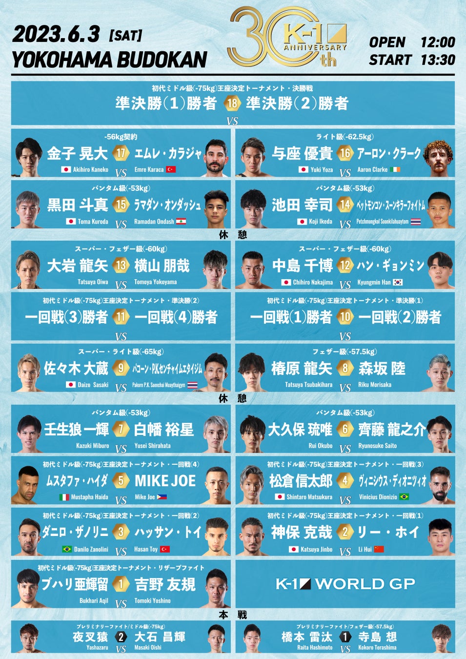 - 「K-1 WORLD GP 2023~初代ミドル級王座決定トーナメント~」横浜武道館大会 概要