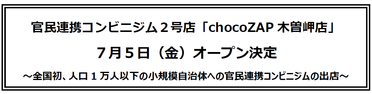 官民連携コンビニジム2号店「chocoZAP木曽岬店」7月5日(金)オープン決定 ~全国初、人口1万人以下の小規模自治体への官民連携コンビニジムの出店~