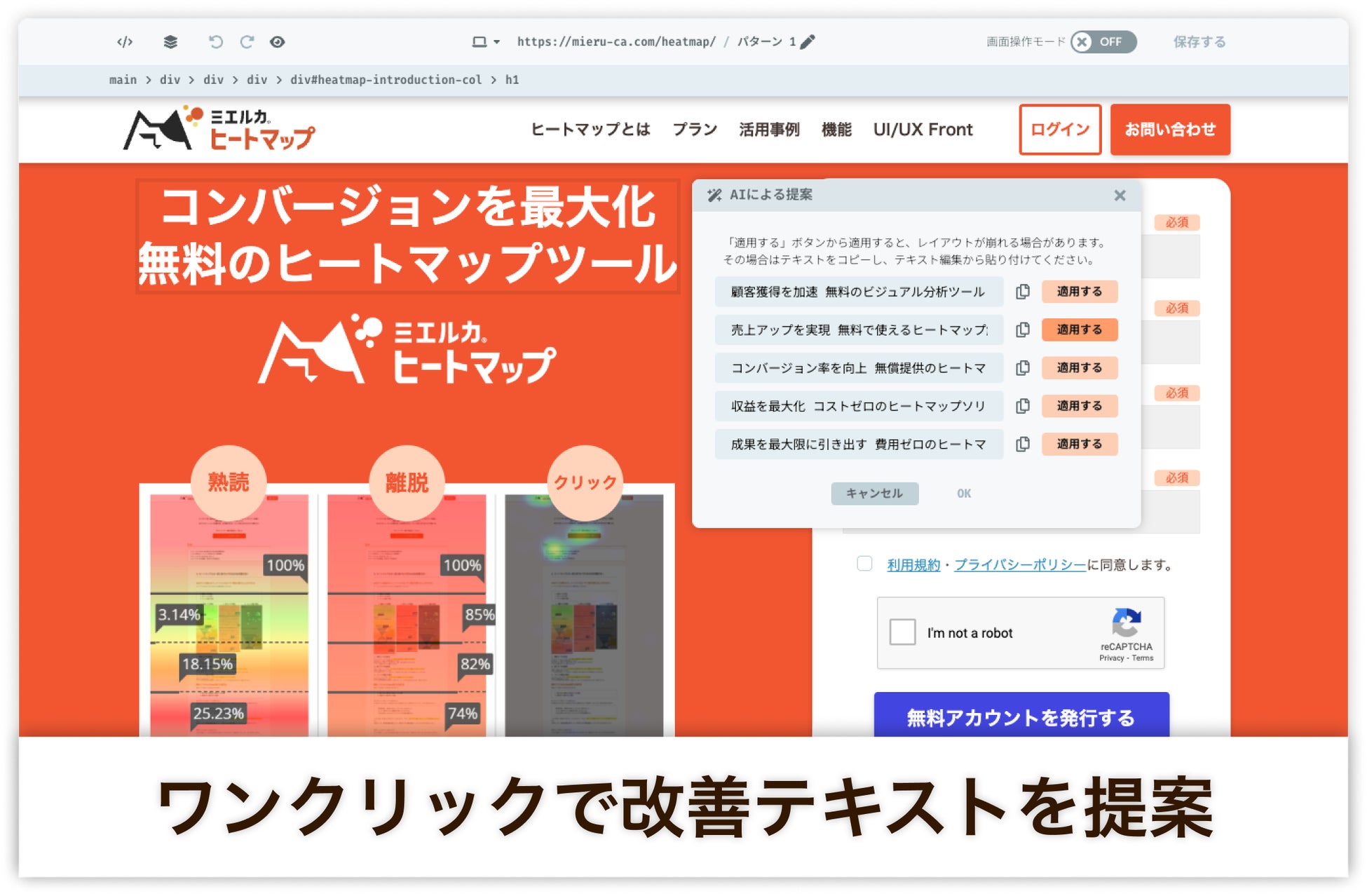 「ミエルカヒートマップ」に改善テキスト案をAIが自動レコメンドする新機能が登場