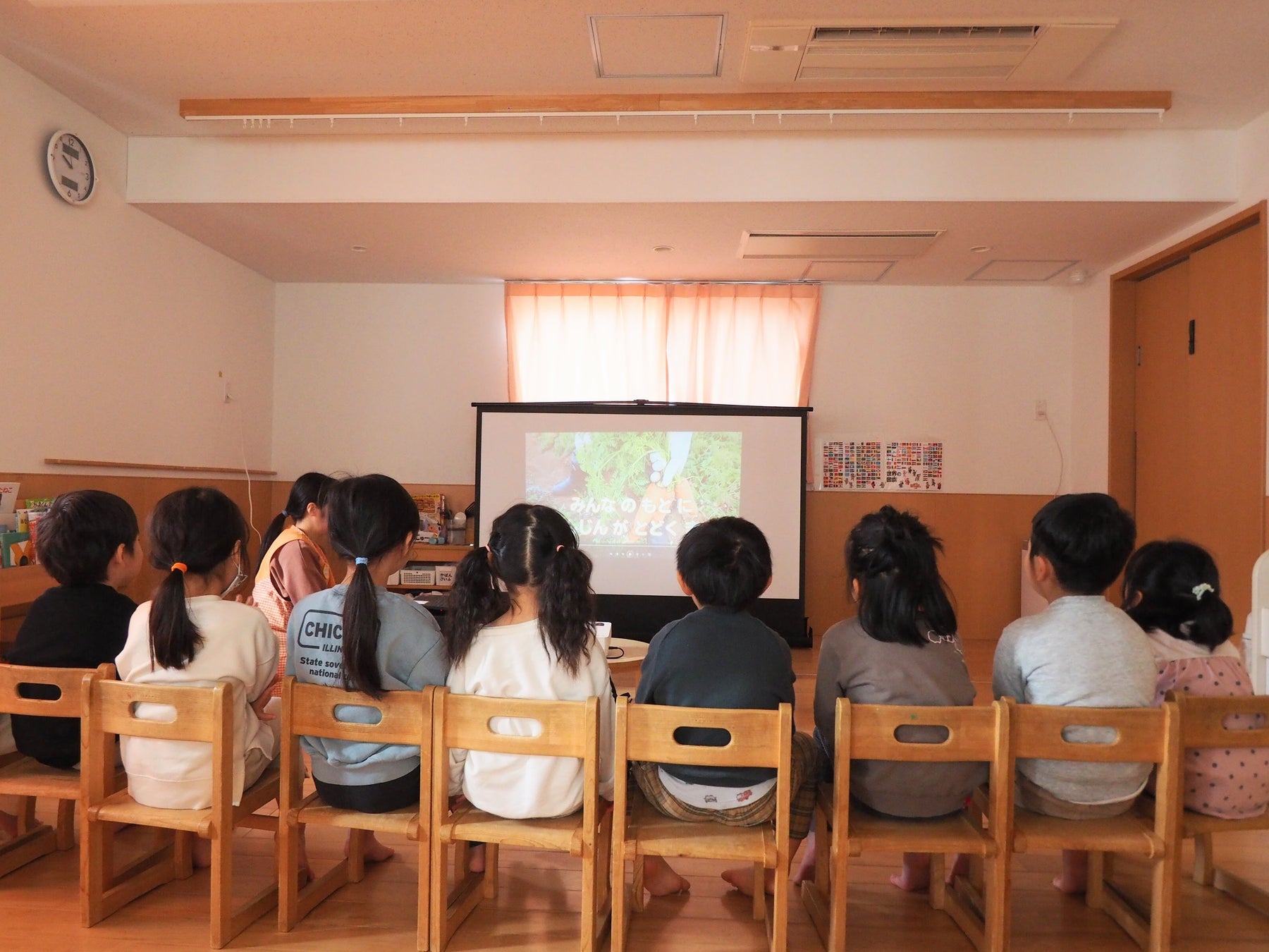 動画を視聴した後は農家から届いたニンジンを使った「にじいろ給食」をみんなでいただきました。保育園にニンジンが届くまでの過程を学んだことで、子どもたちからは「ニンジンって機械をつかってとるんだね」「さっき見たにニンジンだね、おいしいね」といった声が上がり、食への関心や感謝の気持ちが育まれる機会となりました。