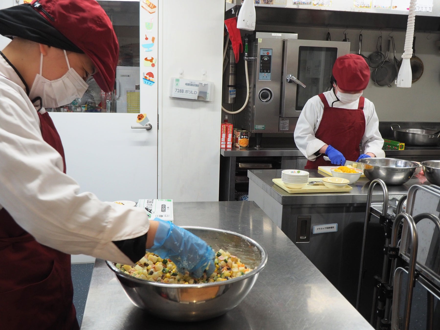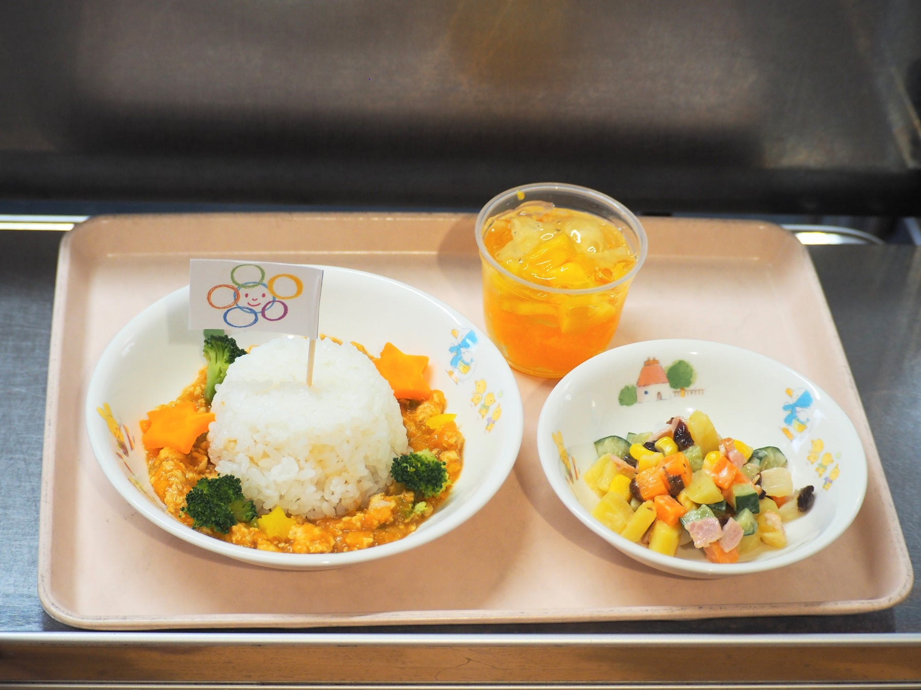 今年も「にじいろ給食」では、ニンジンをふんだんに使用した特別メニューを提供しました。緑・黄色などさまざまな野菜が彩るにじいろカレー、カラフルサラダ、キラキラフルーツポンチが食卓を鮮やかに彩りました。カレーのルーは市販品を使用せず、一から手作り。食材本来の味わいを感じられるよう工夫し、子どもたちが野菜のおいしさや栄養について楽しく学べる機会を設けました。