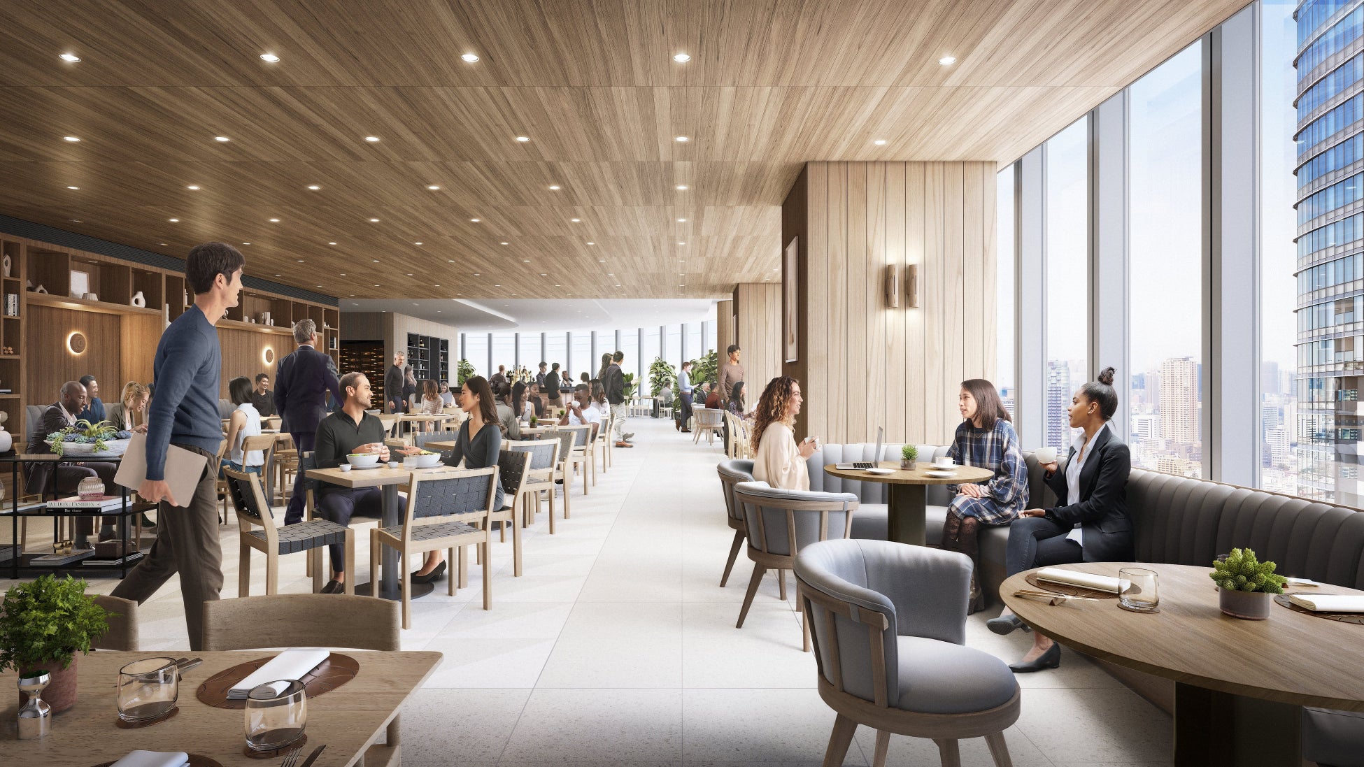また、当社はコロナ禍以降テレワークとオフィスワークを融合させたハイブリッドワークを実践してきました。拠点拡大後も、これまでのハイブリッドワークを維持すると共に、麻布台ヒルズに入居する企業が利用可能な「Hills House」にあるカフェテリアやワークスペース、多目的スペースなどを活用し、自社オフィス単体では実現できないような、より豊かで創造的なワークスタイルの実現を目指します。