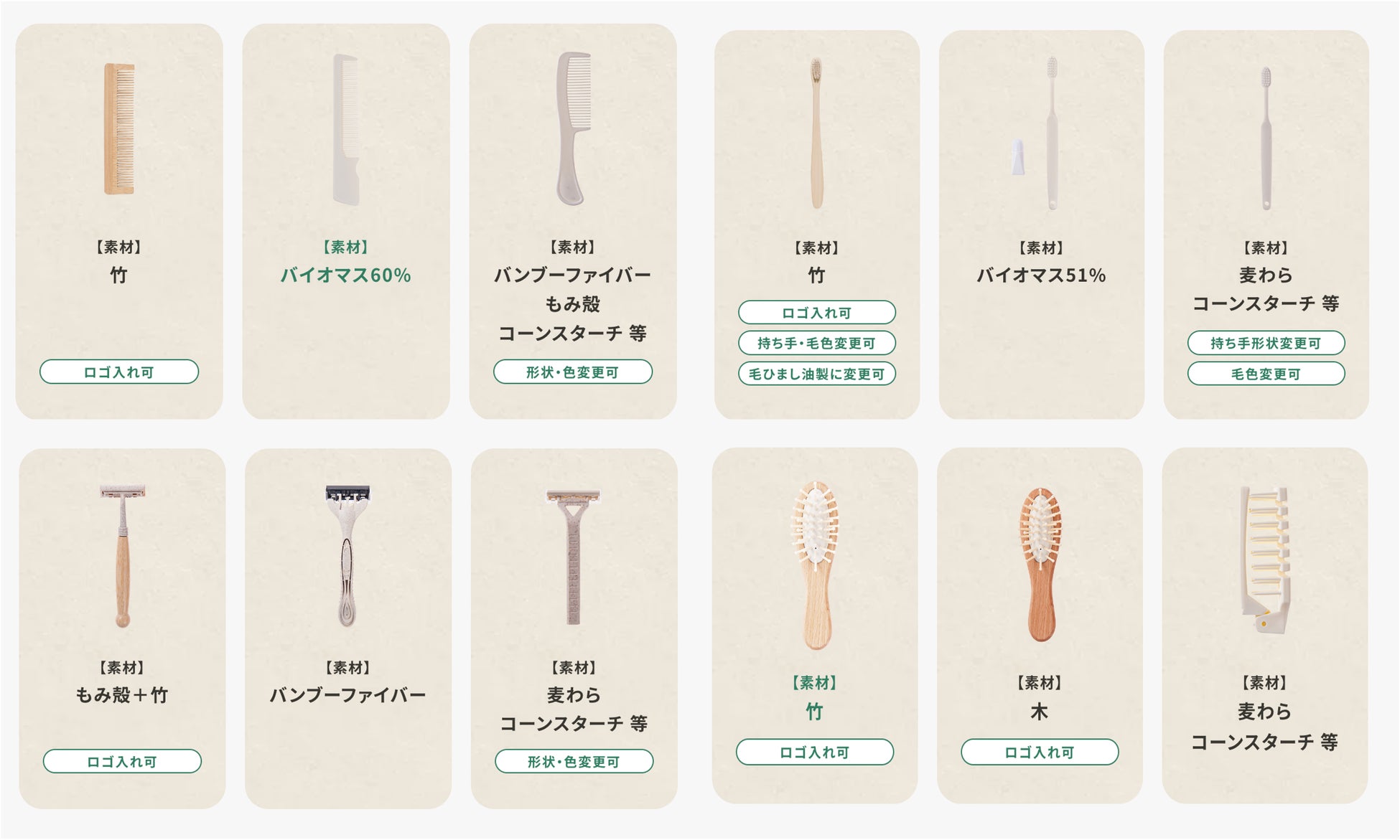 エコ素材のバリエーションが豊富!小ロットから対応可能な、オリジナルアメニティ制作サービス
