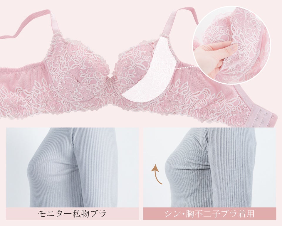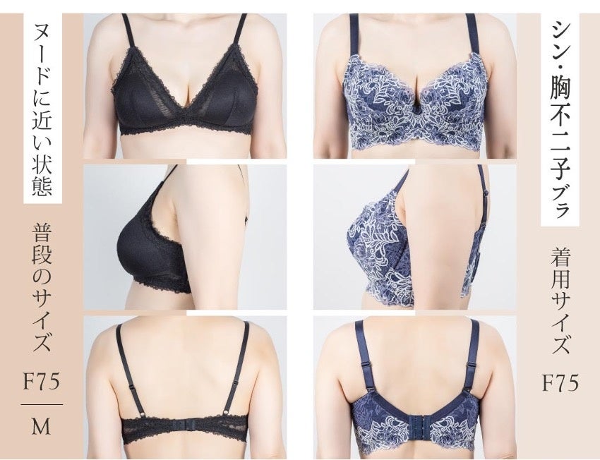 「シン・胸不二子ブラ」はそんな年齢を重ねたバストに特化したアンチエイジングブラ。脇や背中に逃げた柔らかなお肉をしっかりとキャッチし「サイドすっきり&ツンと上向き」の若々しいバストをメイクする機能と、補整下着とは思えないおしゃれなデザインで、昨年7月の発売直後から大人気となり完売サイズが続出いたしました。