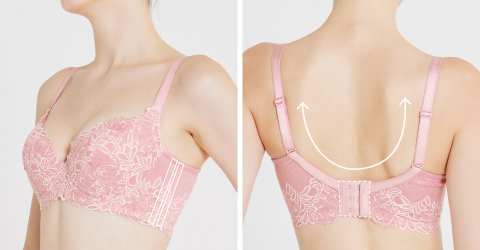 さらにカップサイドには、2重のパネルをつけて寄せ上げ効果をアップ。ただ寄せるだけではない、ツンと上向きの立体バストをメイクします。