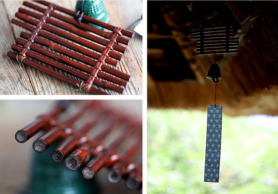 どの風鈴も、自然素材の持つ風合いを大切にしながら、竹職人の技と美意識が息づく逸品です。目と耳で楽しめる、夏ならではの暮らしの道具として、ぜひお楽しみください。