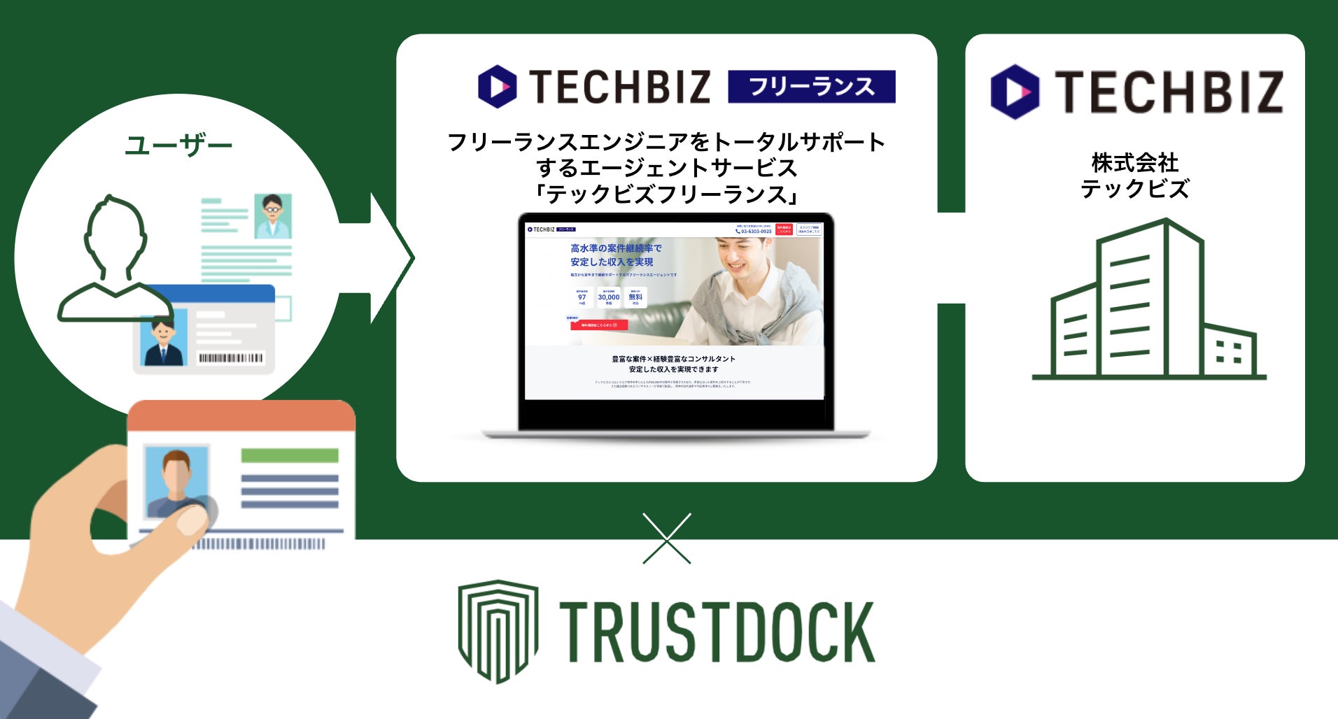テックビズは、TRUSTDOCKが提供するeKYC本人確認サービスにより、「テックビズフリーランス」の本人確認業務をスムーズに行なえるようになります。