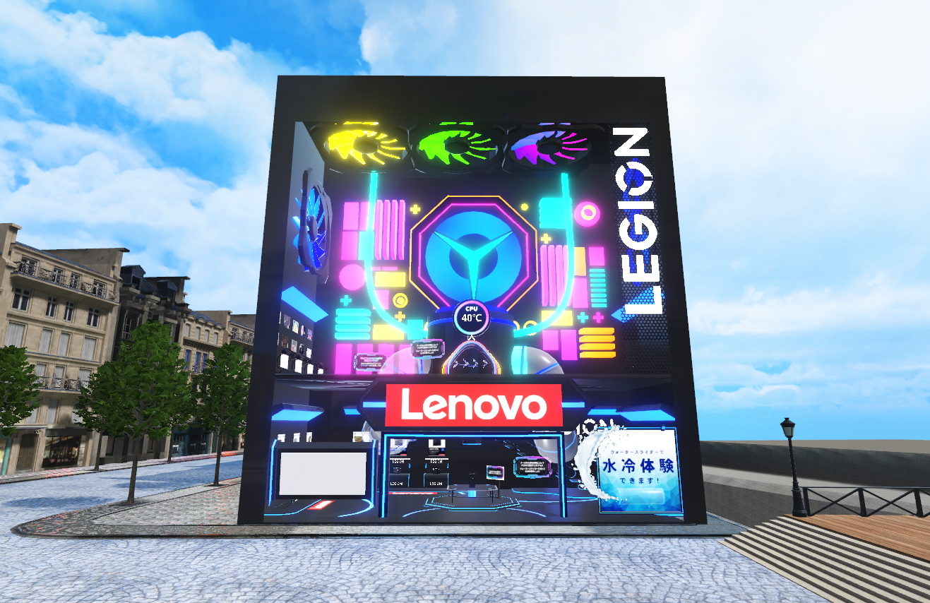 さらに、最も注目のポイント、パワフルさと静音を両立した冷却システムを体感できる「水冷体験」もご用意しました。ユーザーがブース内に滞在し続けることで、時間と共にブース内の温度が上昇。水冷ウォータースライダーに乗ってユーザーがブース内を滑り降りることで、PC内の温度が正常に戻るという仕掛けです。なお、Lenovoブースではクリエイターとのコラボ企画として、SNS連動型の天板デザインコンテストも実施。クリエイターの応募作品がブース内に展示されます。