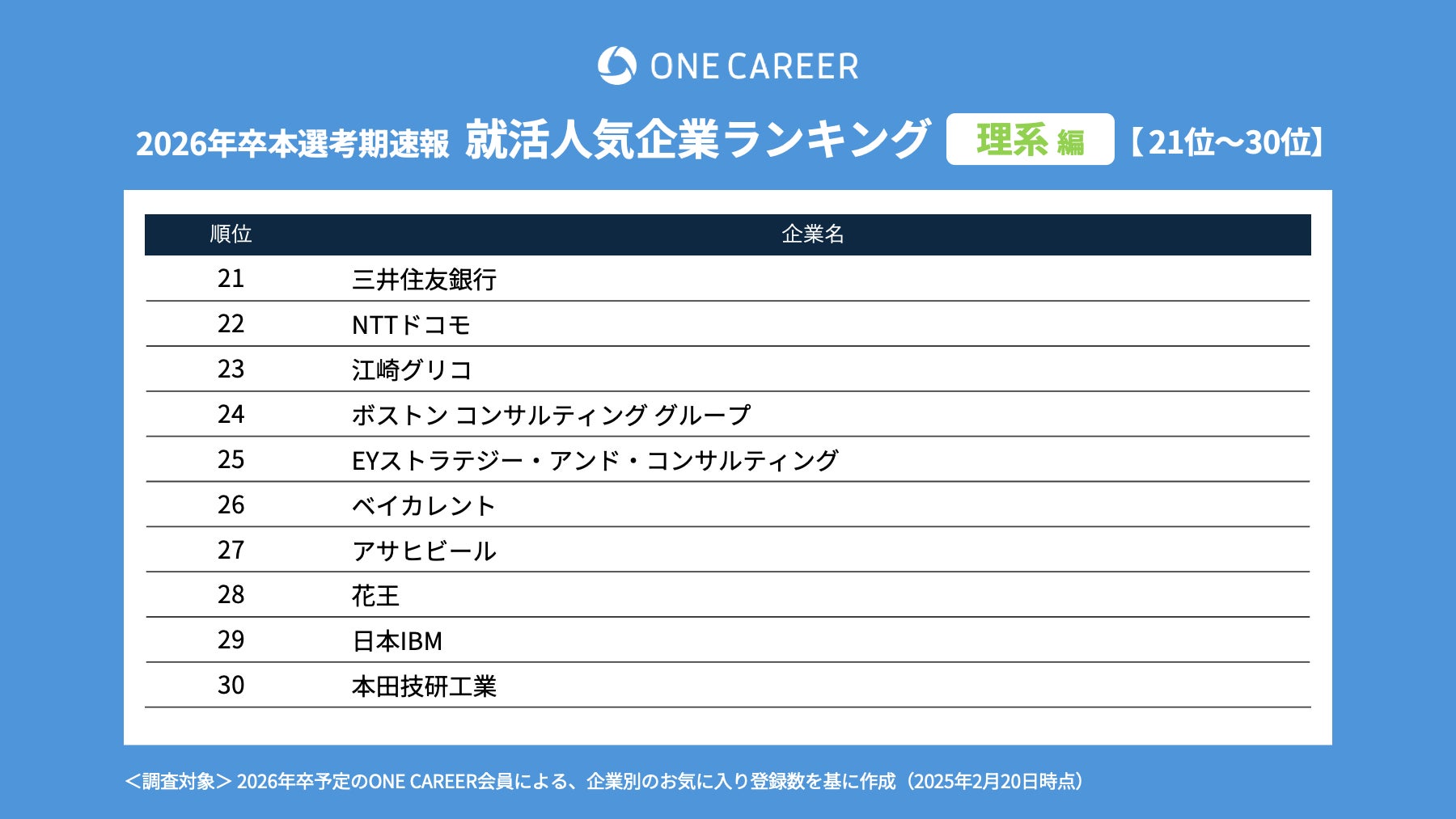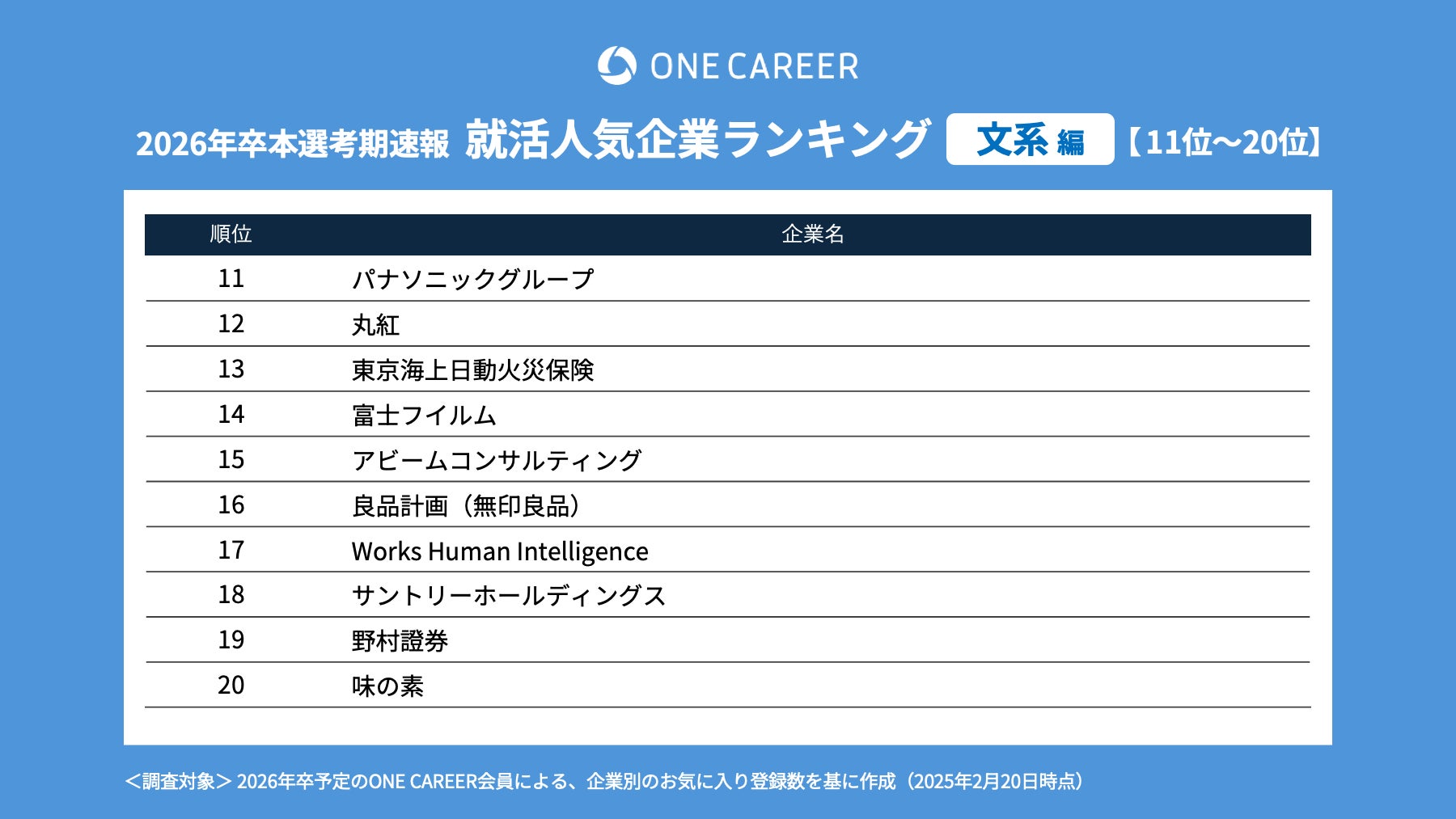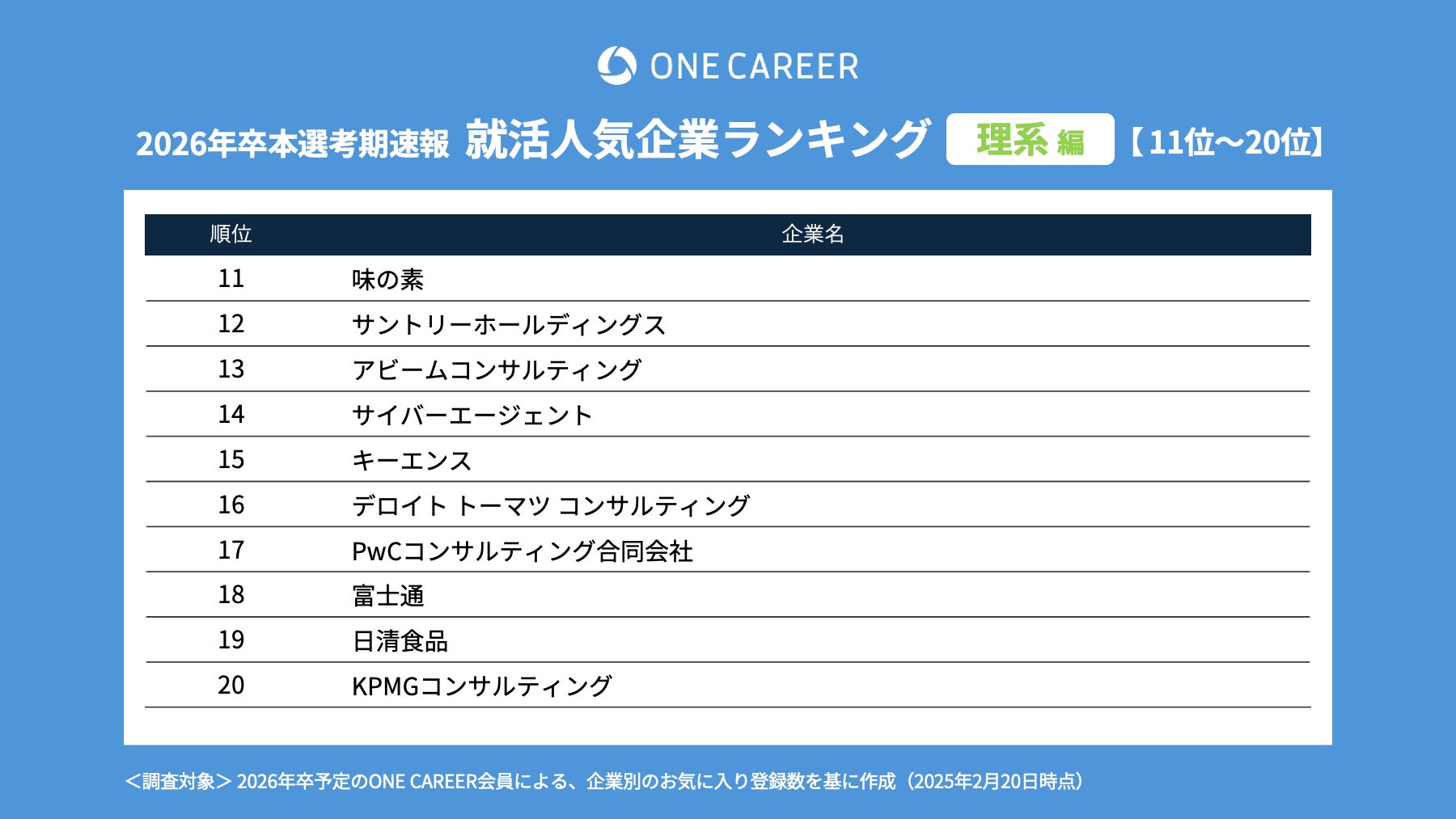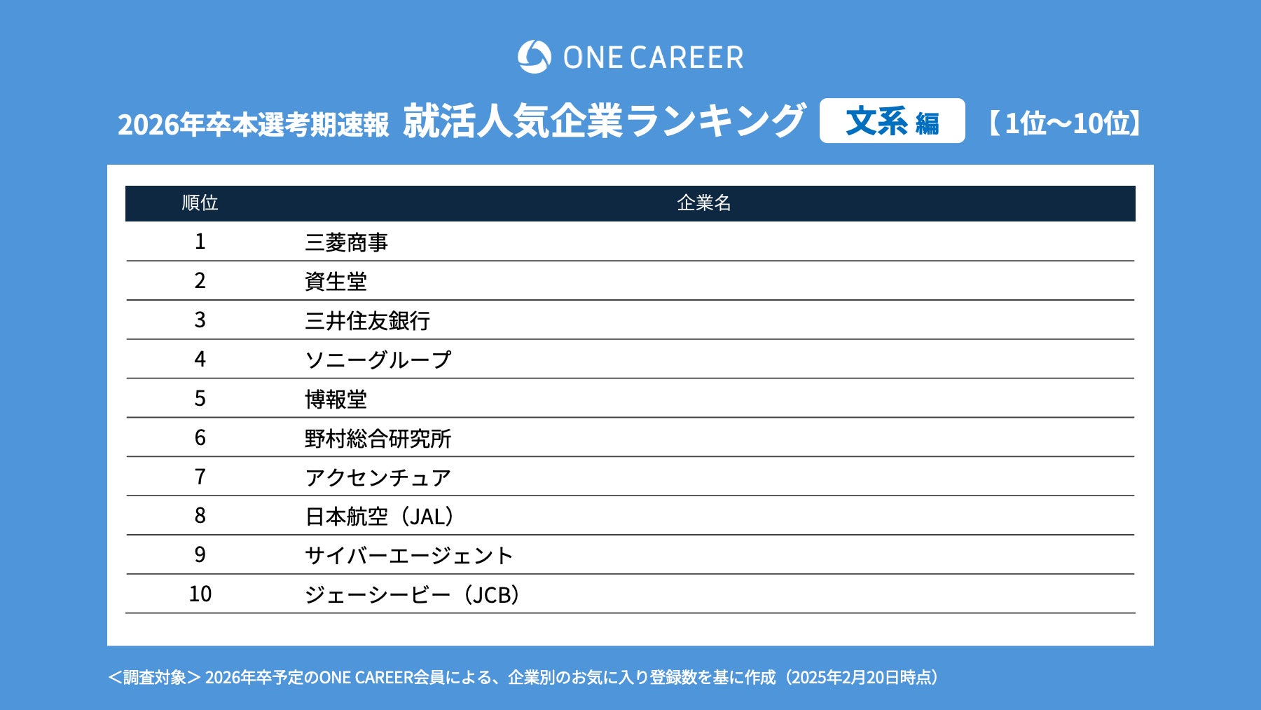 「ワンキャリア就活人気企業ランキング 【文系・理系編】26卒本選考期速報」を公開
