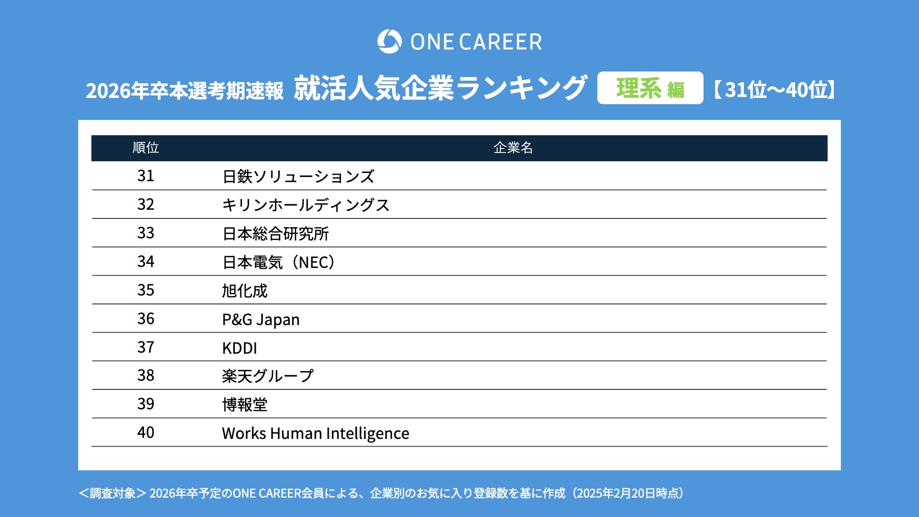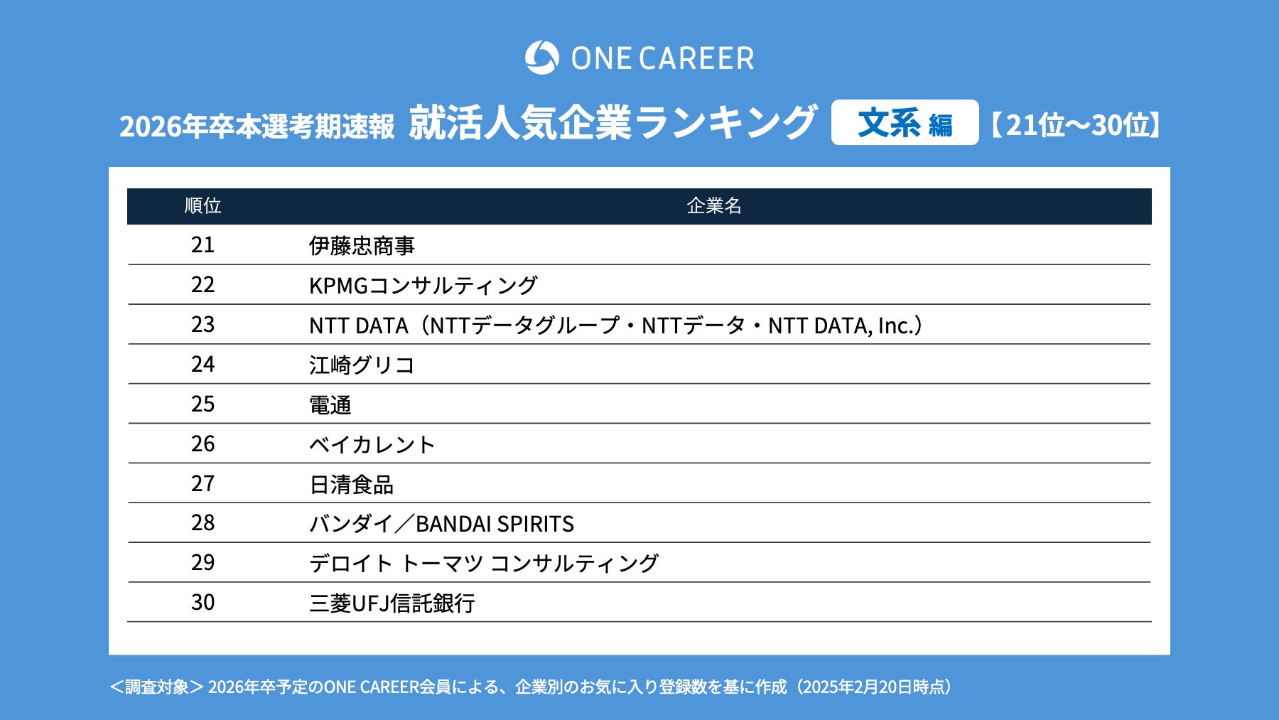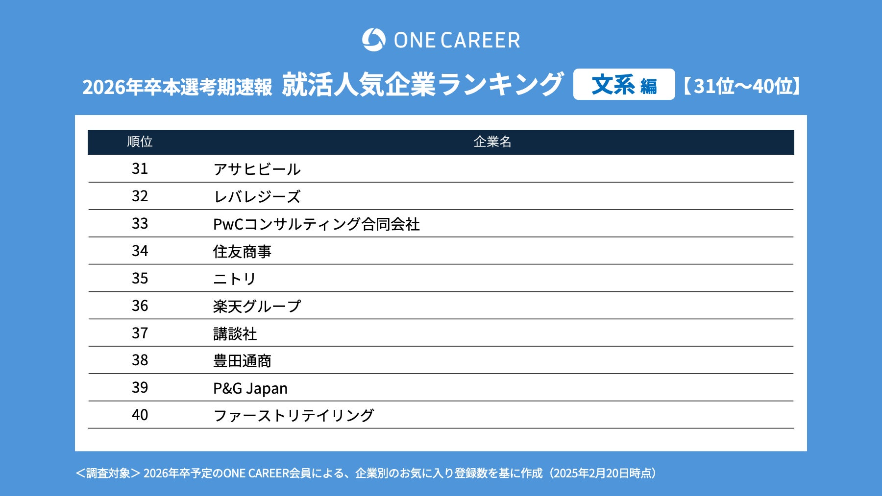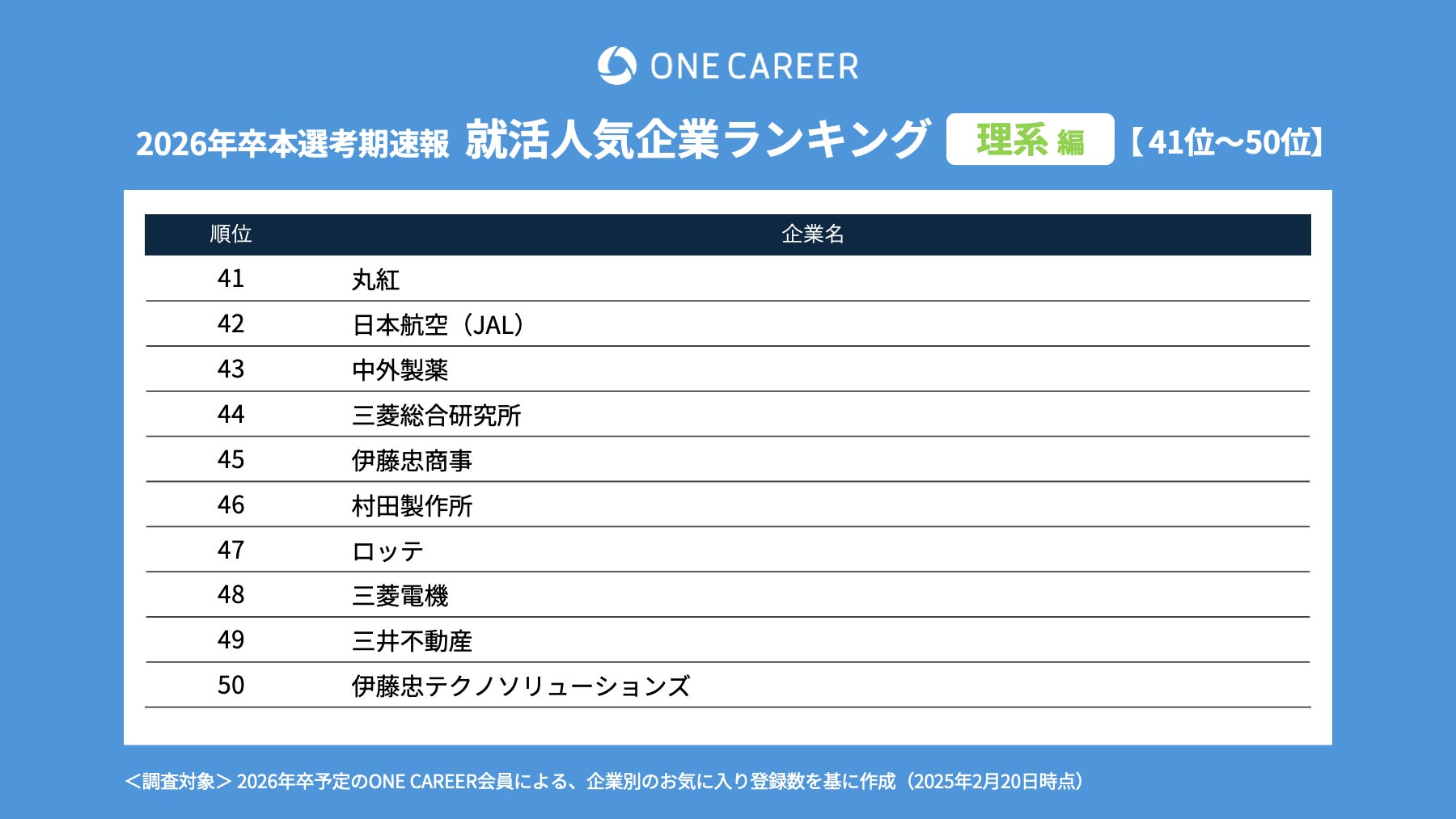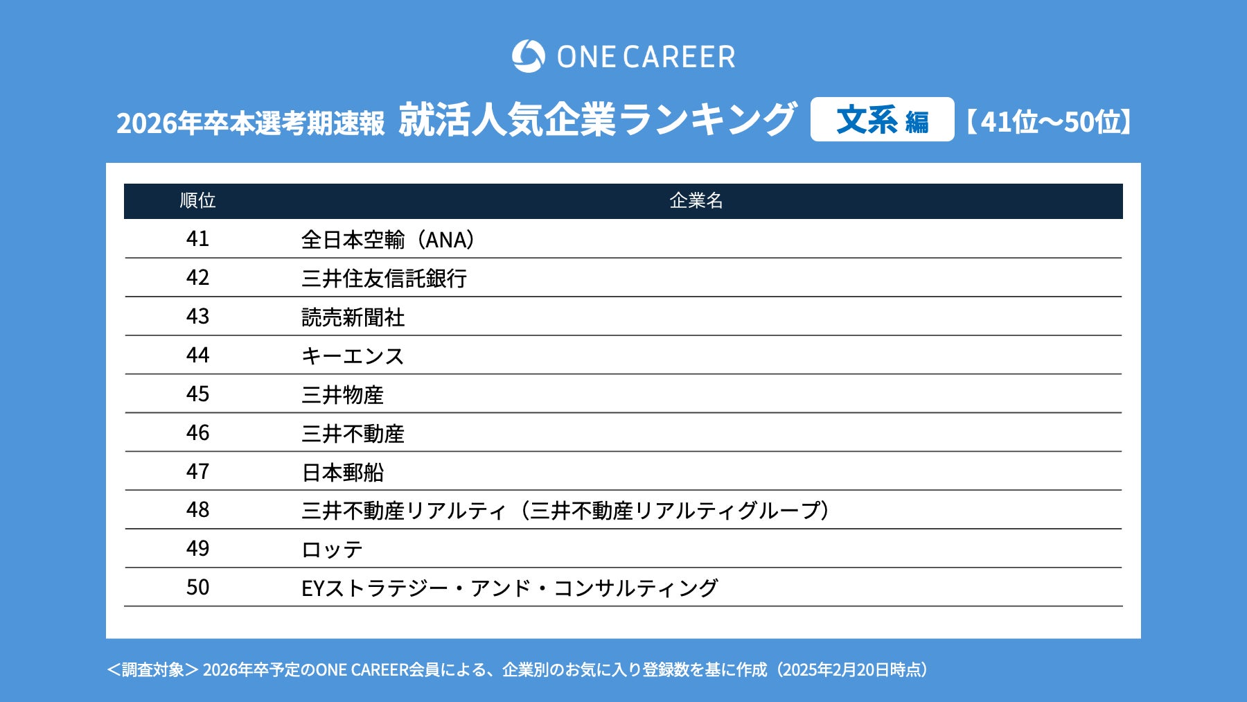 「ワンキャリア就活人気企業ランキング 【文系・理系編】26卒本選考期速報」を公開