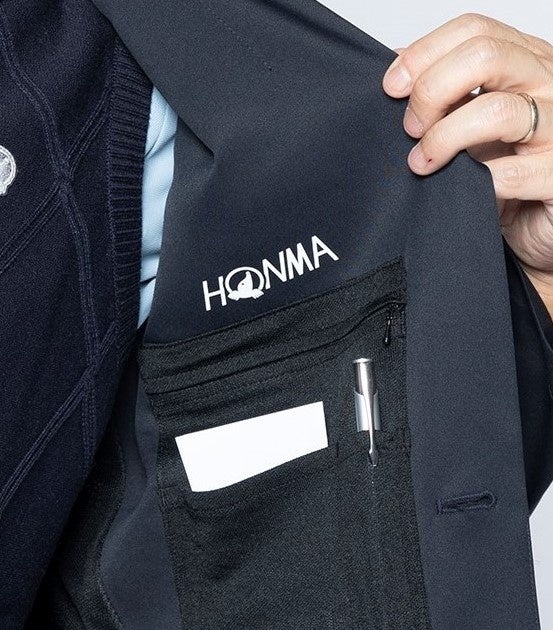 ジャケット左胸内ポケットには本間ゴルフのロゴプリント入り。脱ぎ着する際にちらっと見え、自然と服のこだわりを感じさせます。