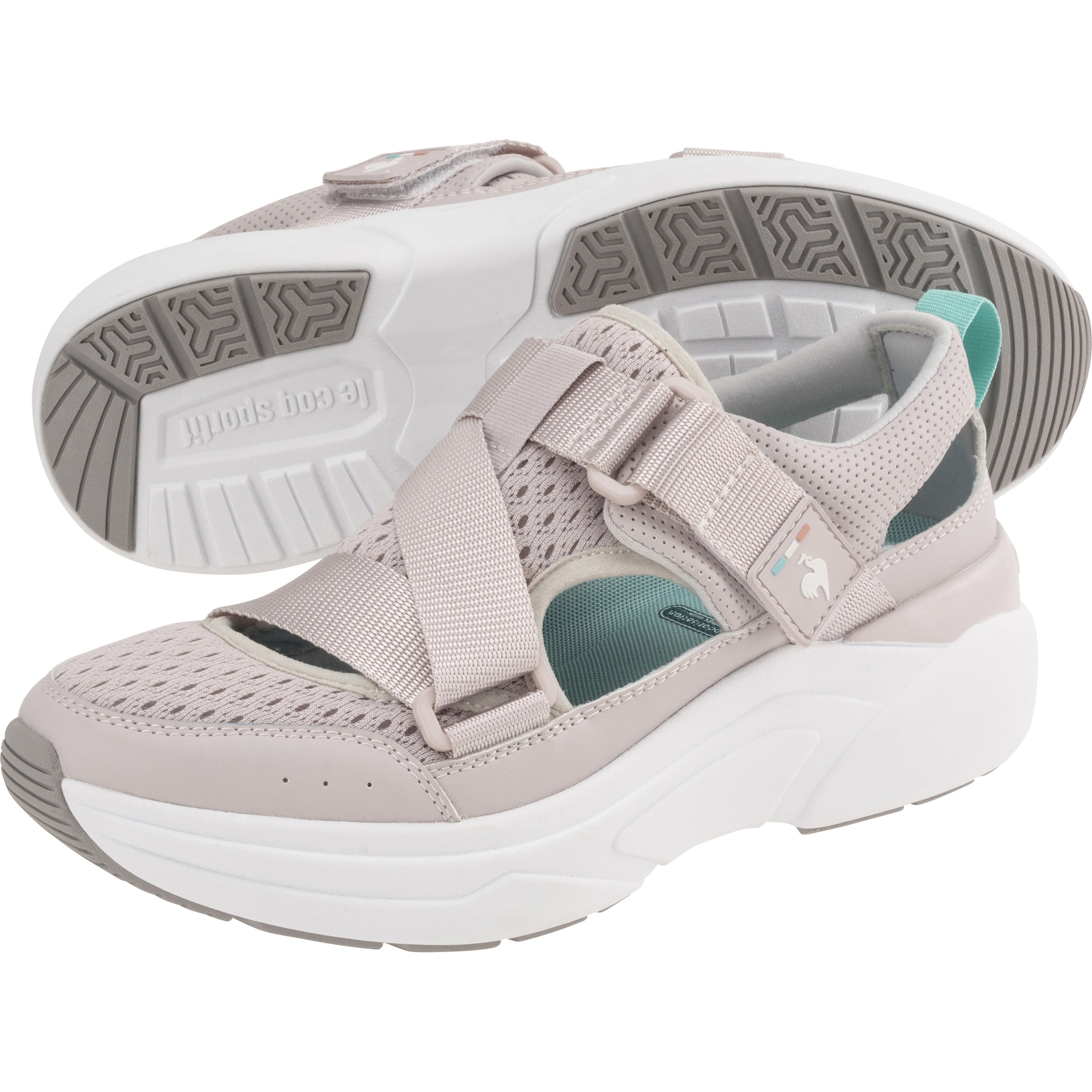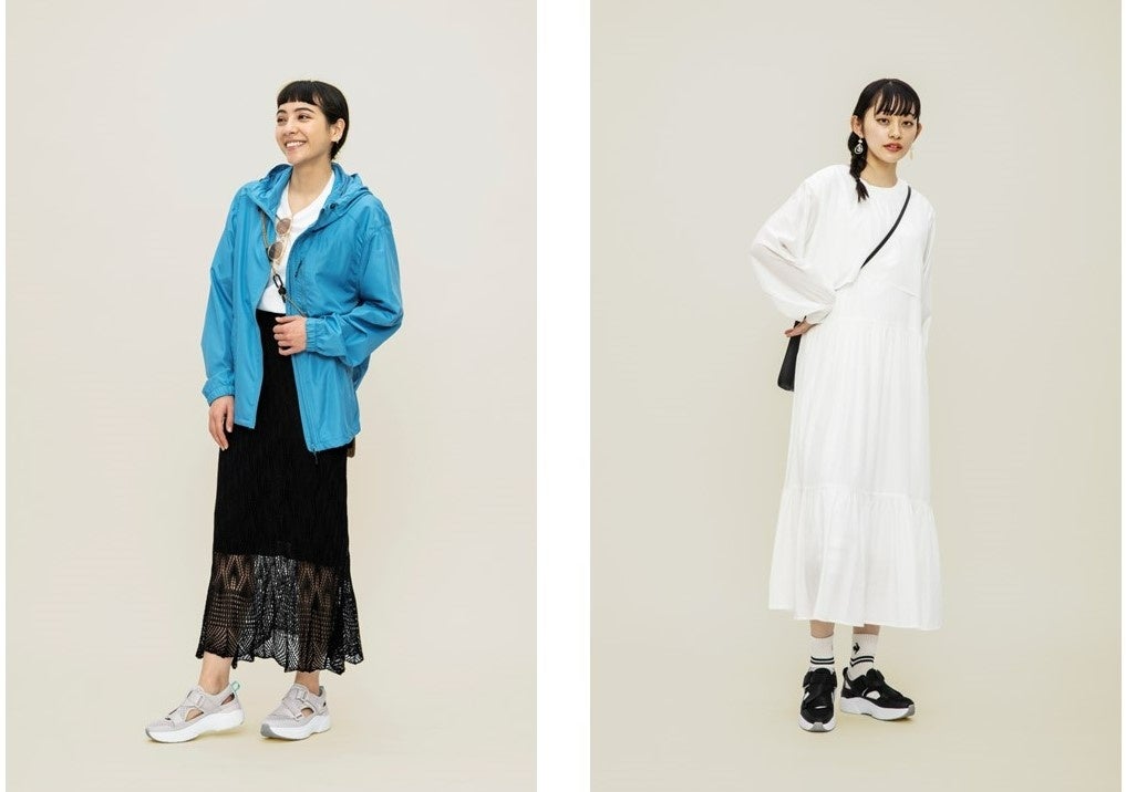 スニーカーのソールをそのまま使用した厚底ソールのクッション性と、ベルトで調整できるフィット感で、夏に向けて増えるキャンプやバーベキュー、野外フェスなどのアウトドアアクティビティや、歩くことの多いお出かけにもぴったり。また、アッパー部分にはメッシュ素材を、素肌に触れるライニング部分には接触涼感素材を使用、また、消臭機能のあるインソールを採用しているので、夏の足元を快適にします。