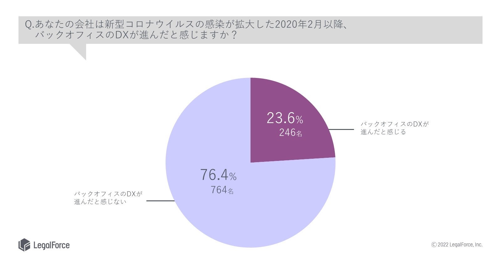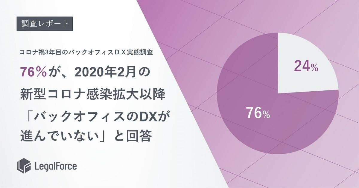 【LegalForce調査レポート】76%が、2020年2月の新型コロナウイルス感染拡大以降「バックオフィスのDXが進んでいない」と回答