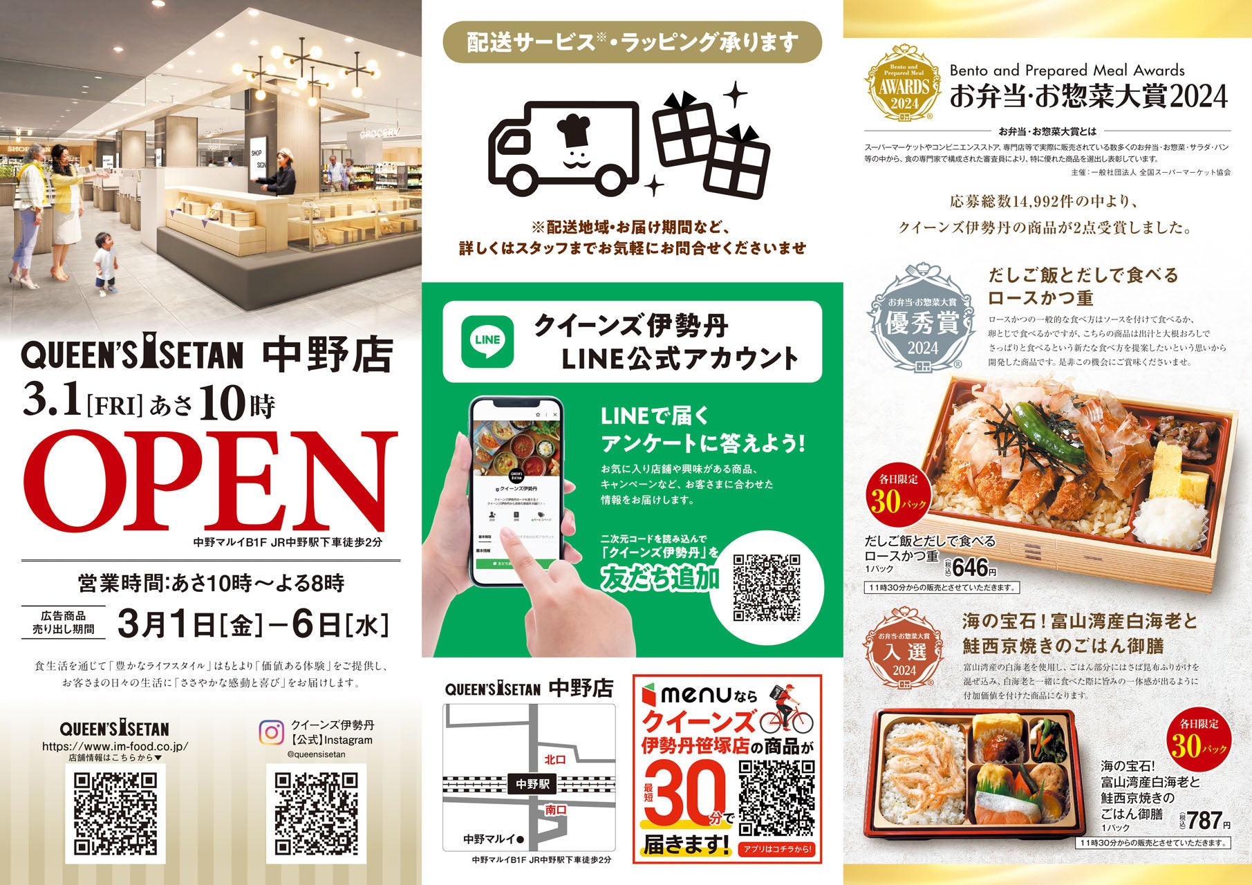 こだわり商品・銘菓を豊富に!「クイーンズ伊勢丹 中野店」2024年3月1日(金)グランドオープン