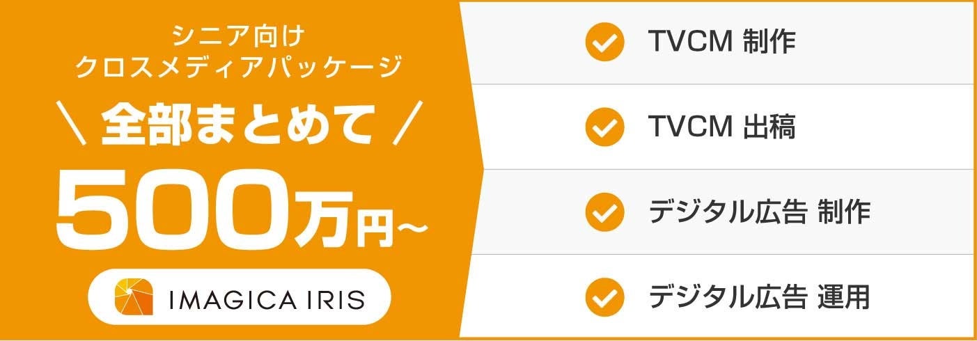 IMAGICA IRIS、シニア向けのプロモーションに特化した広告サービスパッケージ「シニア向けクロスメディアパッケージ」の提供を開始