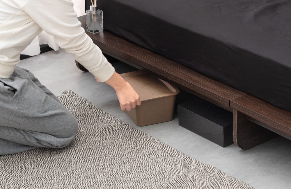 ステージの四隅は丸角デザインを採用しており、ステージベッド特有の隙間部分の角もないため、お子様も安心してご使用いただくことができます。またベッド下には11cmの空間があり、ロボット掃除機なども通りやすく収納としてもご活用いただけます。