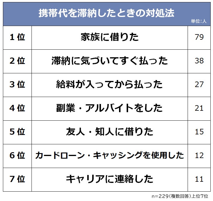 【携帯代を滞納したときの対処法ランキング】男女229人アンケート調査