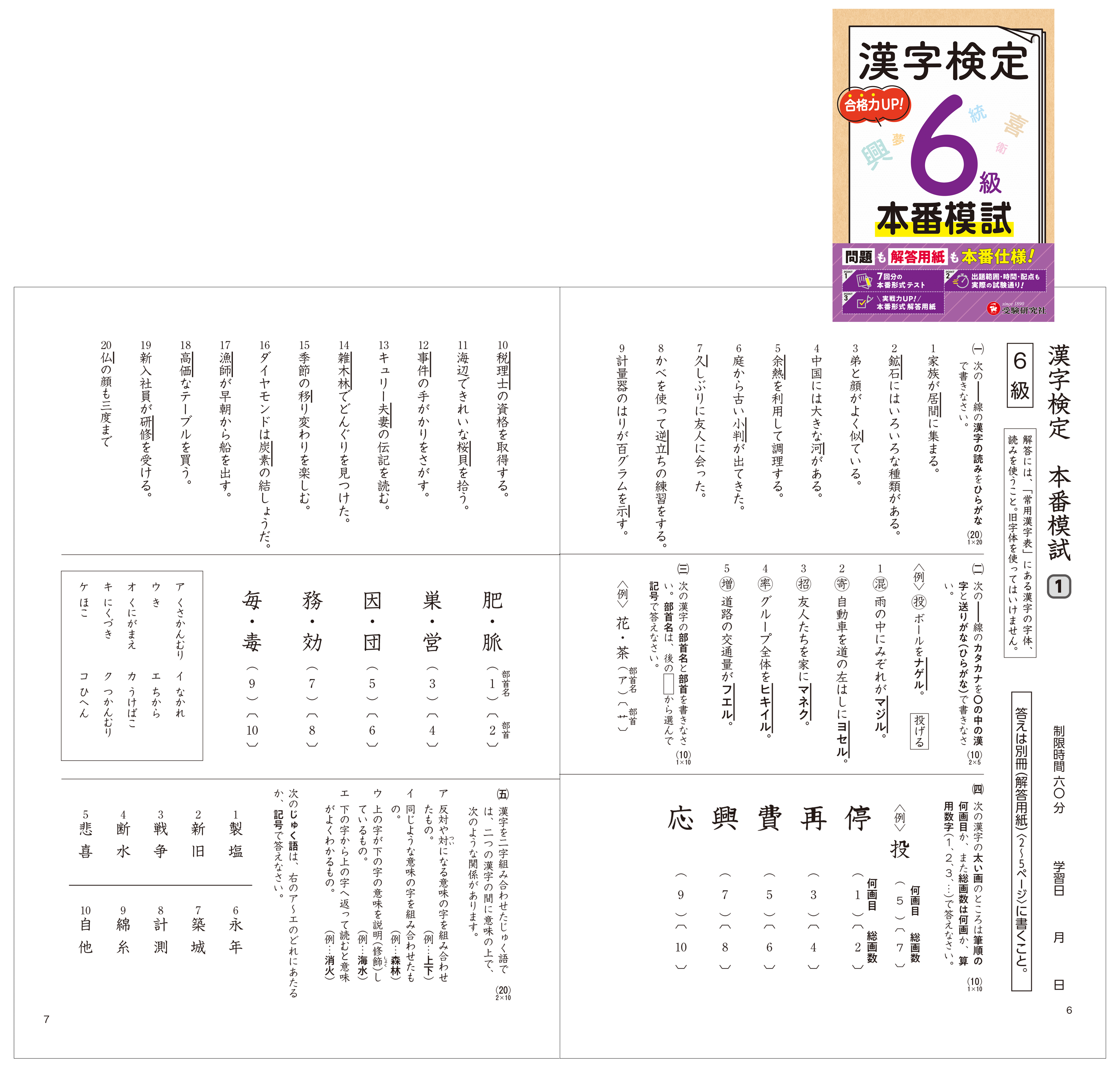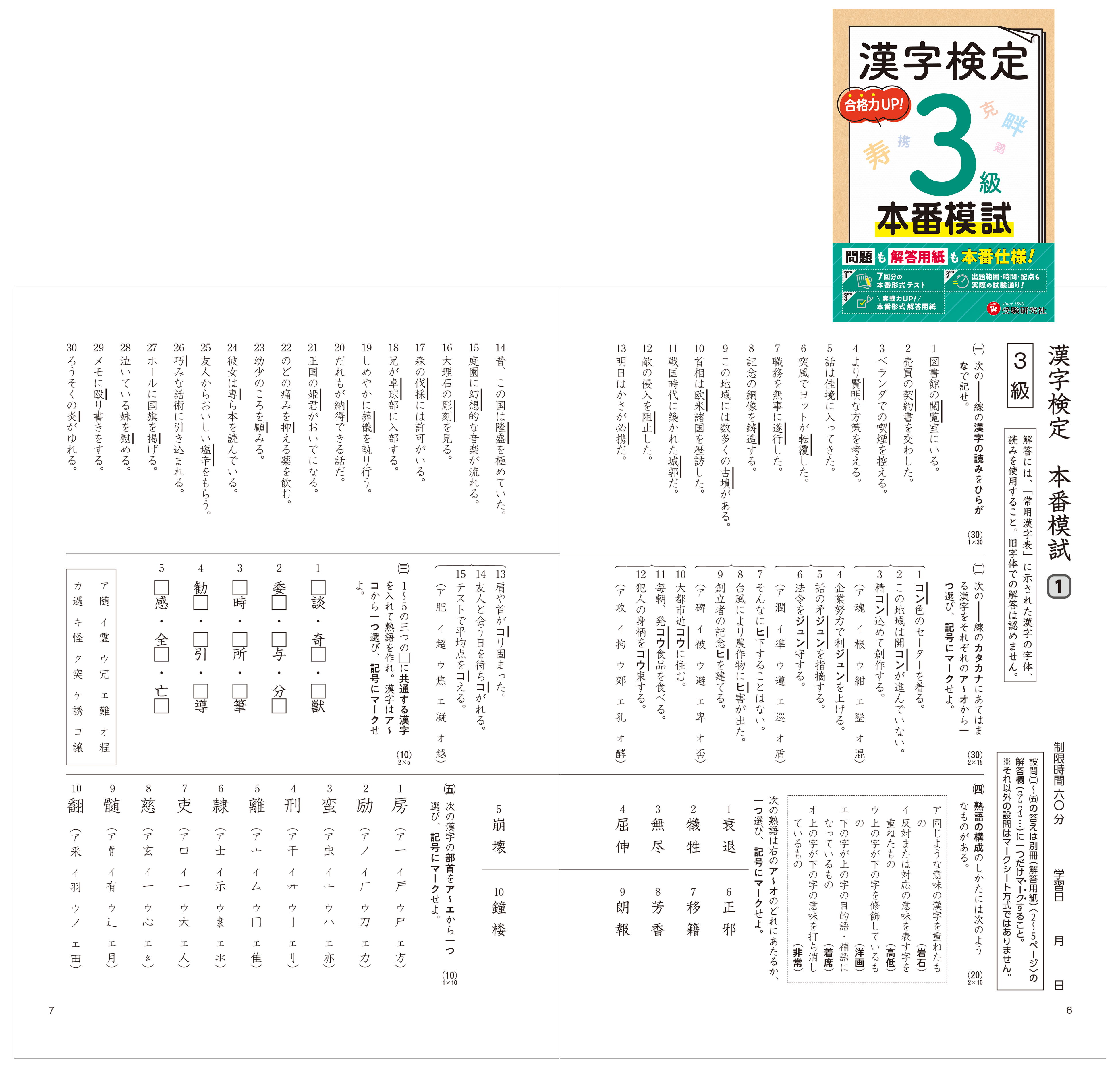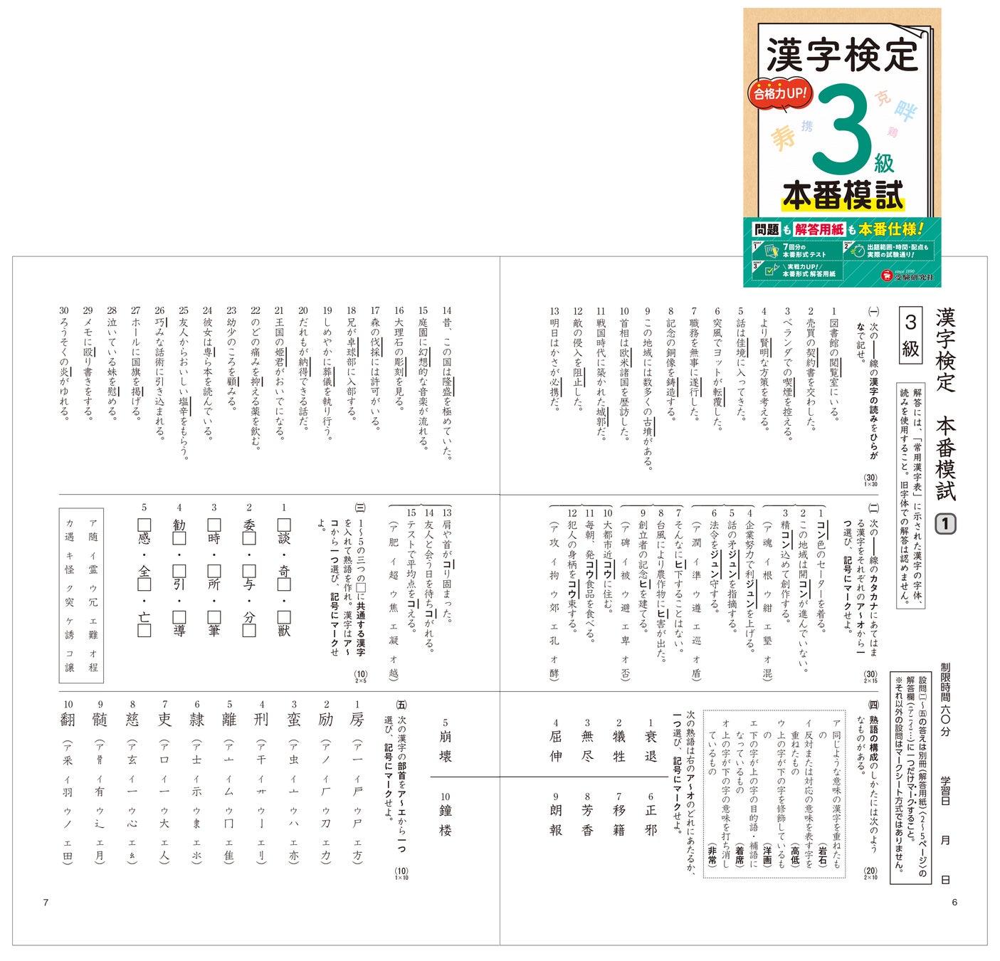 『漢字検定 本番模試』 2級/準2級/3級/4級/5級/6級/7級