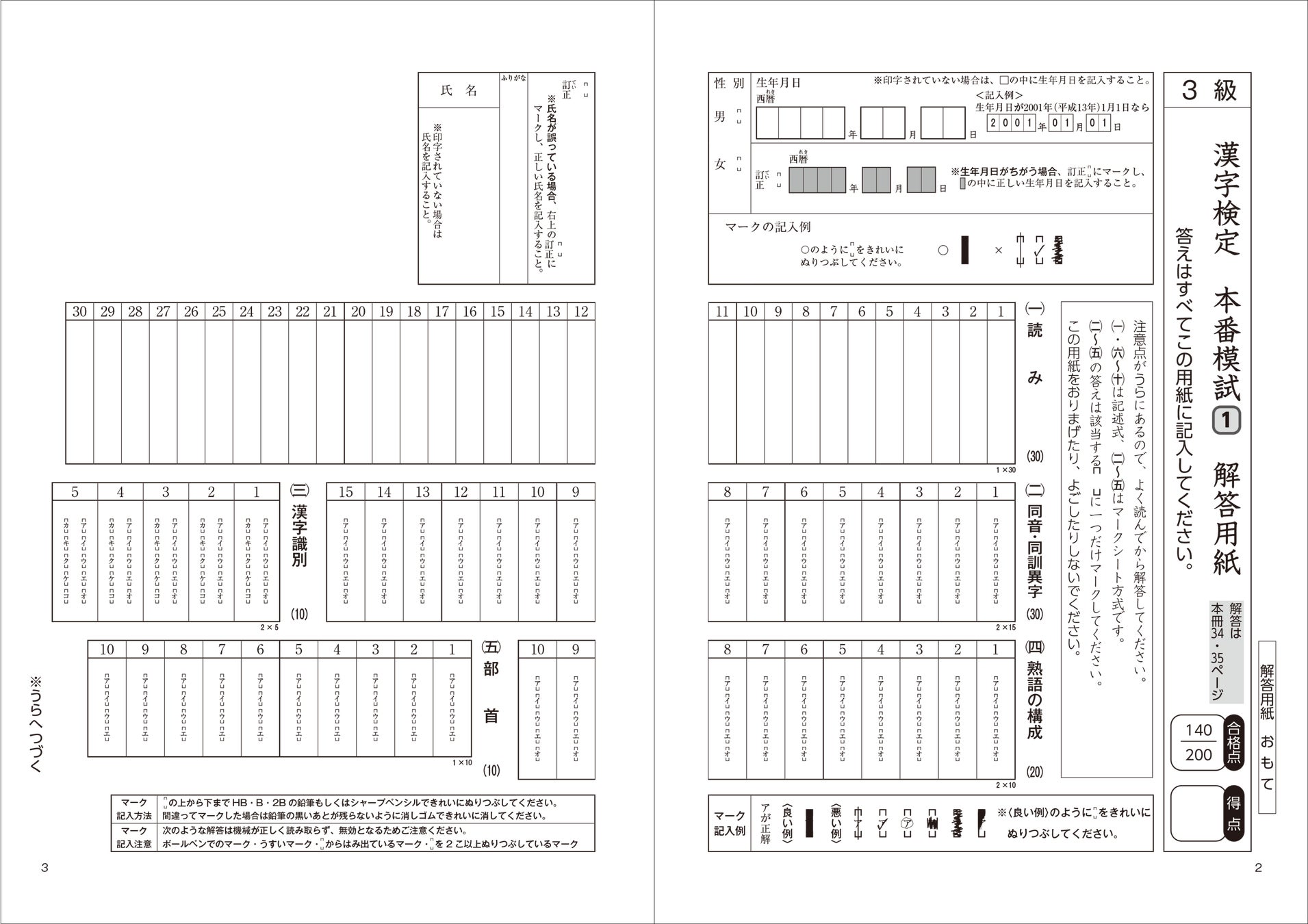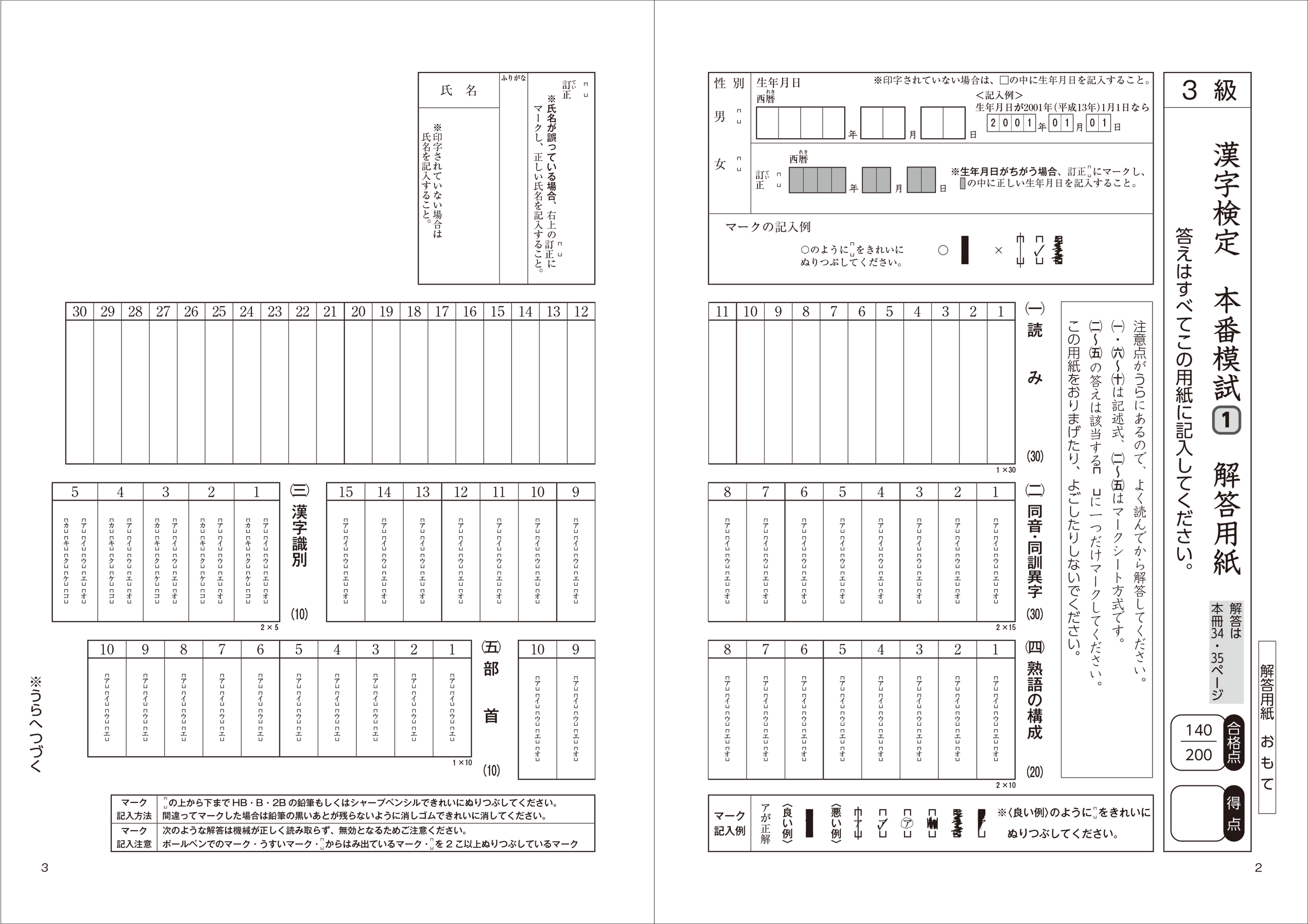 ●漢検と同じ形式の問題・解答用紙で、本番に備えた実戦的な予行演習ができる。