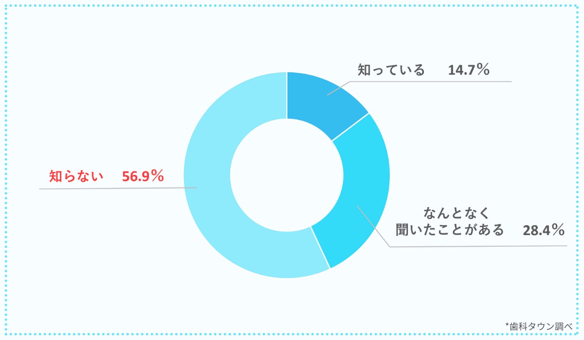 がん治療や全身麻酔を使う手術を受けた場合、手術前後に口腔ケアを行うと、早期回復や合併症予防の効果を期待できることがデータで示されています。しかし、この事実を「知っている」人は14.7%、「なんとなく聞いたことがある」人は28.4%にとどまり、「知らない」人が56.9%と最も多い結果になりました。