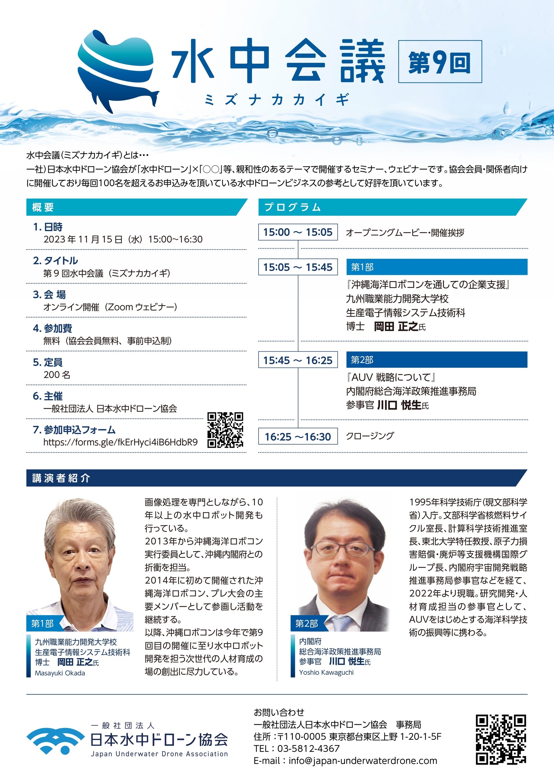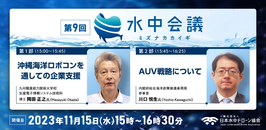 【日本水中ドローン協会】ウェビナー「第9回水中会議(ミズナカカイギ)」を11月15日に開催。登壇者に内閣府AUV戦略担当者の登壇が決定!