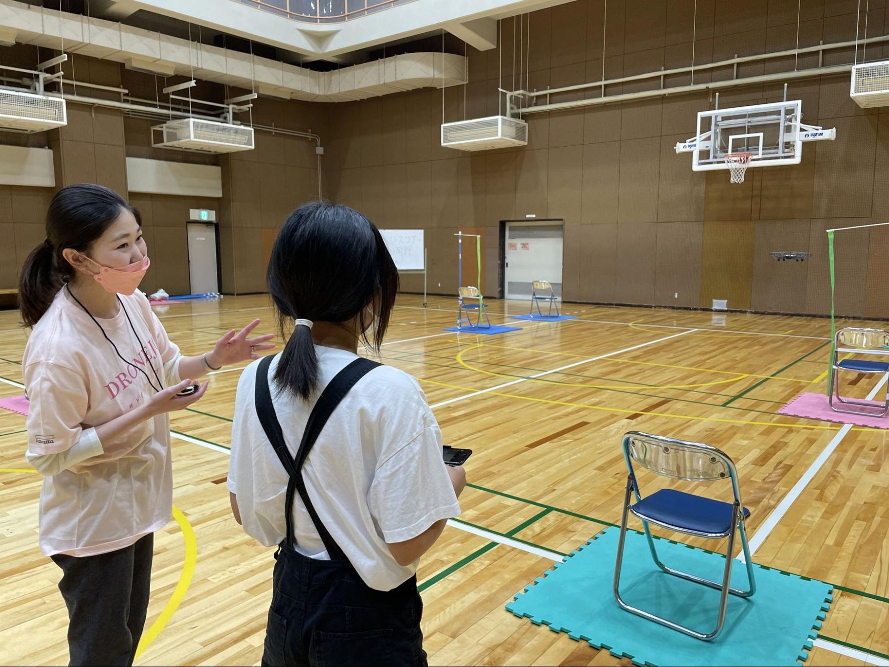 特に好評だったのが、2分間でコースを何週できるかというゲームで、ゲーム参加者は早くコースを回ろうと真剣になってドローン操作している姿がとても印象的でした。