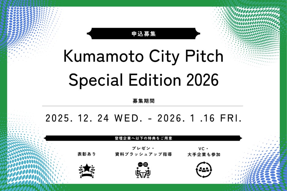 そして、今回は2月12日(木)開催の「THE POINT. KUMAMOTO」内で、特別編「Kumamoto City Pitch Special Edition 2026」を実施します。