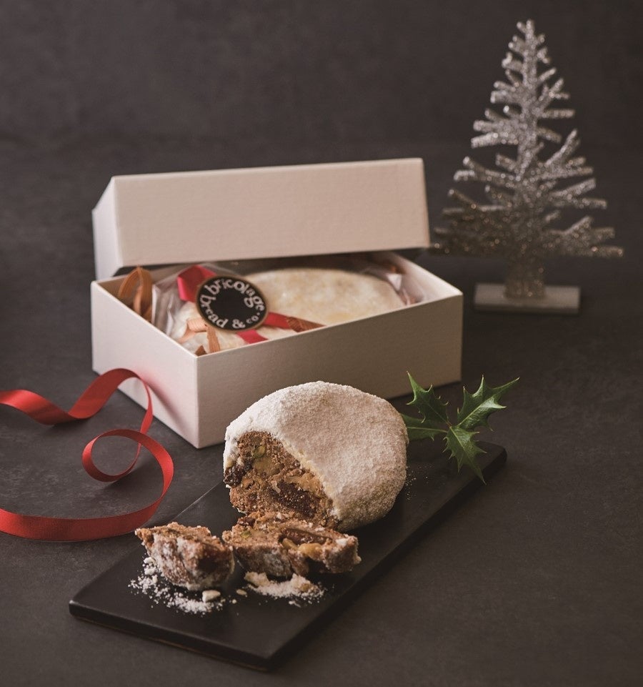 毎年人気の手作りシュトレンがさらにバージョンアップして登場。国産小麦全粒粉をメインにライ麦粉を配合した生地には、スパイスやドライフルーツ、ナッツがたっぷり入っています。レーズン、フィグ、アプリコット、オレンジピールなどのドライフルーツは洋酒に漬け込まれて豊かな香り。時間と共に素材それぞれが一体に馴染んでいく変化も楽しんでください。