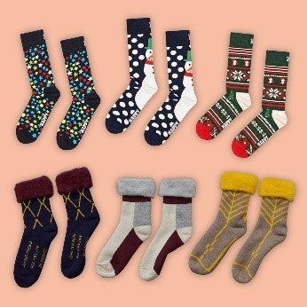東京シティビューショップでは、明るくて楽しい雰囲気を演出してくれる「ポップ」なデザインの靴下や、冬の寒い季節にしっかり足を温めてくれる「もこもこ靴下」など、ホリデーシーズンにピッタリな靴下を多数揃えて「靴下PRRTY!!」を開催します。