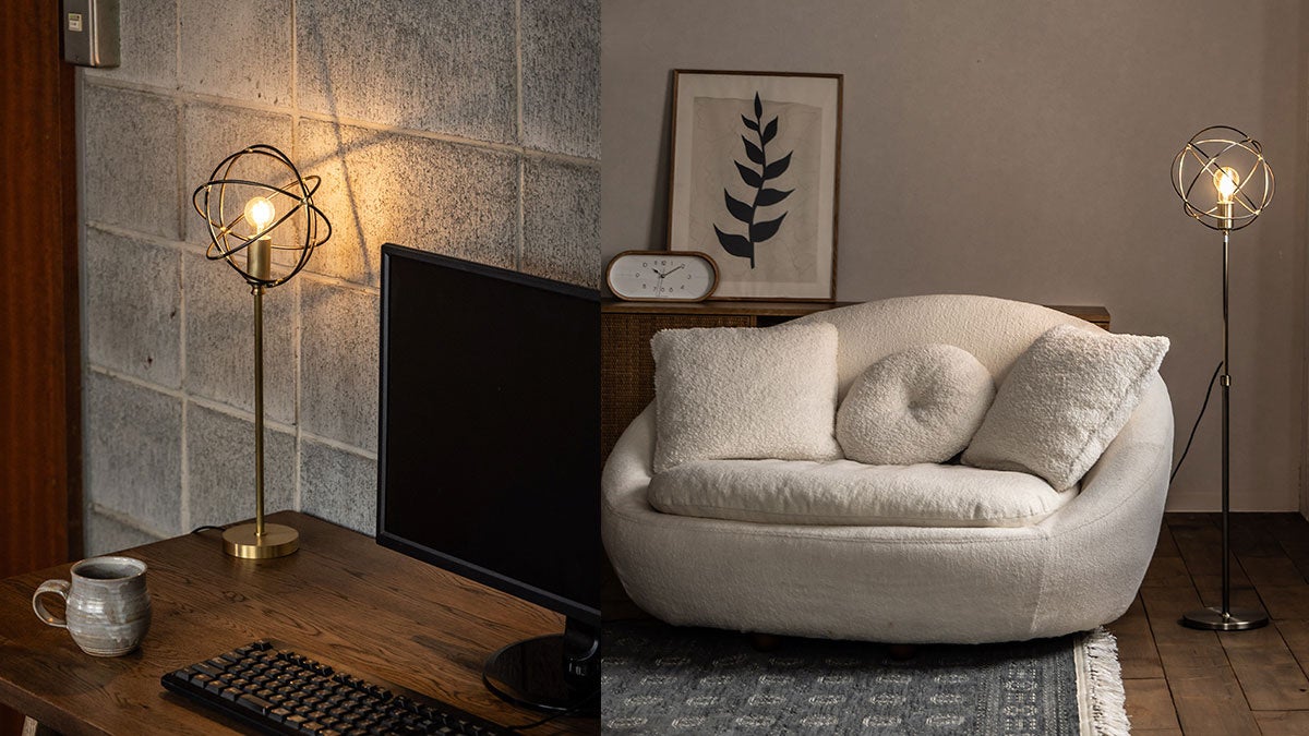 株式会社関家具(福岡県大川市、代表取締役社長:春田 秀樹、以下関家具)は、関家具のデザインチームがプロデュースするインテリアブランド「CRUSH CRASH PROJECT(クラッシュプロジェクト、以下クラッシュ)」より、長年ご好評いただいている「アークメタルランプ」に、新たなバリエーションとして、「アークメタルスタンドランプ」と「アークメタルデスクランプ」が加わりました。スチールワイヤーで形作られた球体フォルムが、やわらかな陰影を生み出し、真鍮のソケットや留め金具がほどよいアクセントとなるこのアークメタルシリーズ。既存の「アークメタルランプ」とともに、より多彩な空間演出が可能になりました。