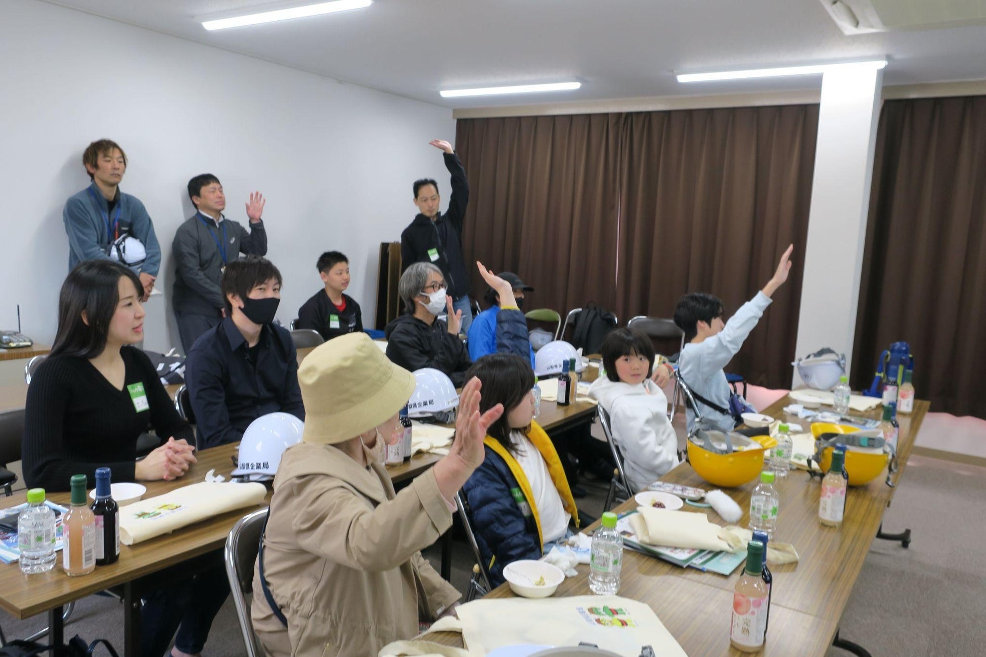 空から捉えた発電設備の映像がモニターに映し出されると、参加者からは「おぉ〜!」と歓声が。普段は立ち入れない視点から見るインフラの姿に、子どもも大人も興味津々の様子でした。