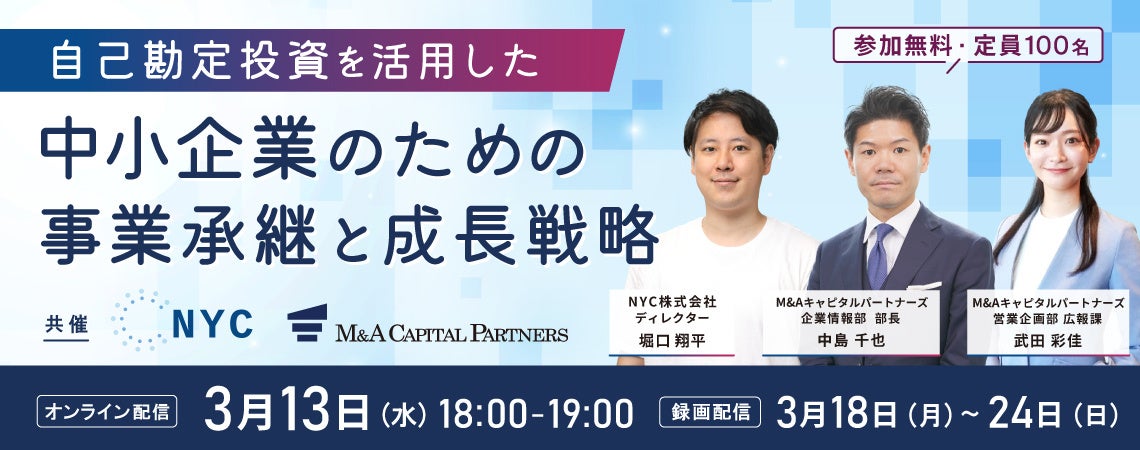【オンラインセミナー】「自己勘定投資」を活用した中小企業のための事業承継と成長戦略セミナー
