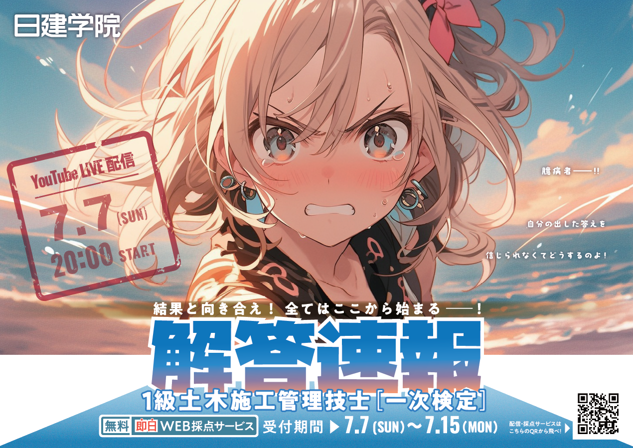 【2024年度 1級土木施工 一次検定】試験当日(7/7) 20:00~「解答速報」YouTube LIVE配信!