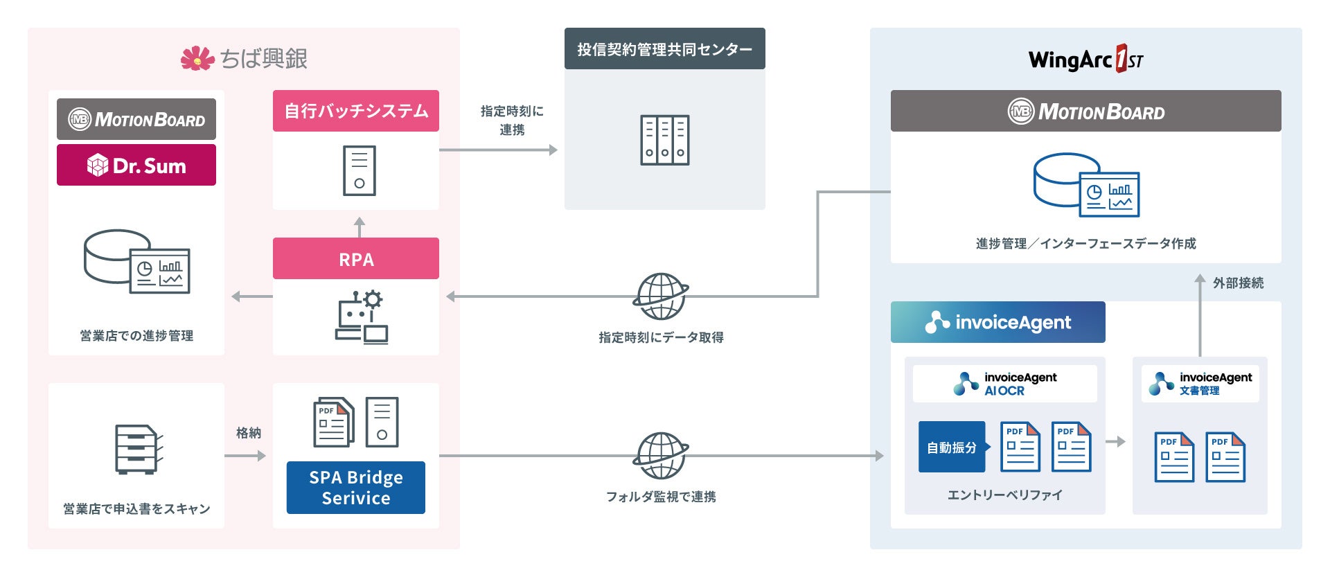 そこで電子交付のシステムと並行して、内製化によるOCRシステムの構築を検討、invoiceAgent OCRとMotionBoard、Dr.Sumを組み合わせた「投資信託販売にかかわるOCRシステム」が2024年1月から本番稼働しました。更改費用を従来システムの約4分の1に削減できたほか、文字の認識率が高いため正確かつスピーディーな運用が実現しました。またMotionBoardとDr.Sumの活用により支店側でもエントリーやチェック、完了の件数など全体の進捗状況を確認でき、スキャン内容の検索も可能になったことで業務効率が向上しました。