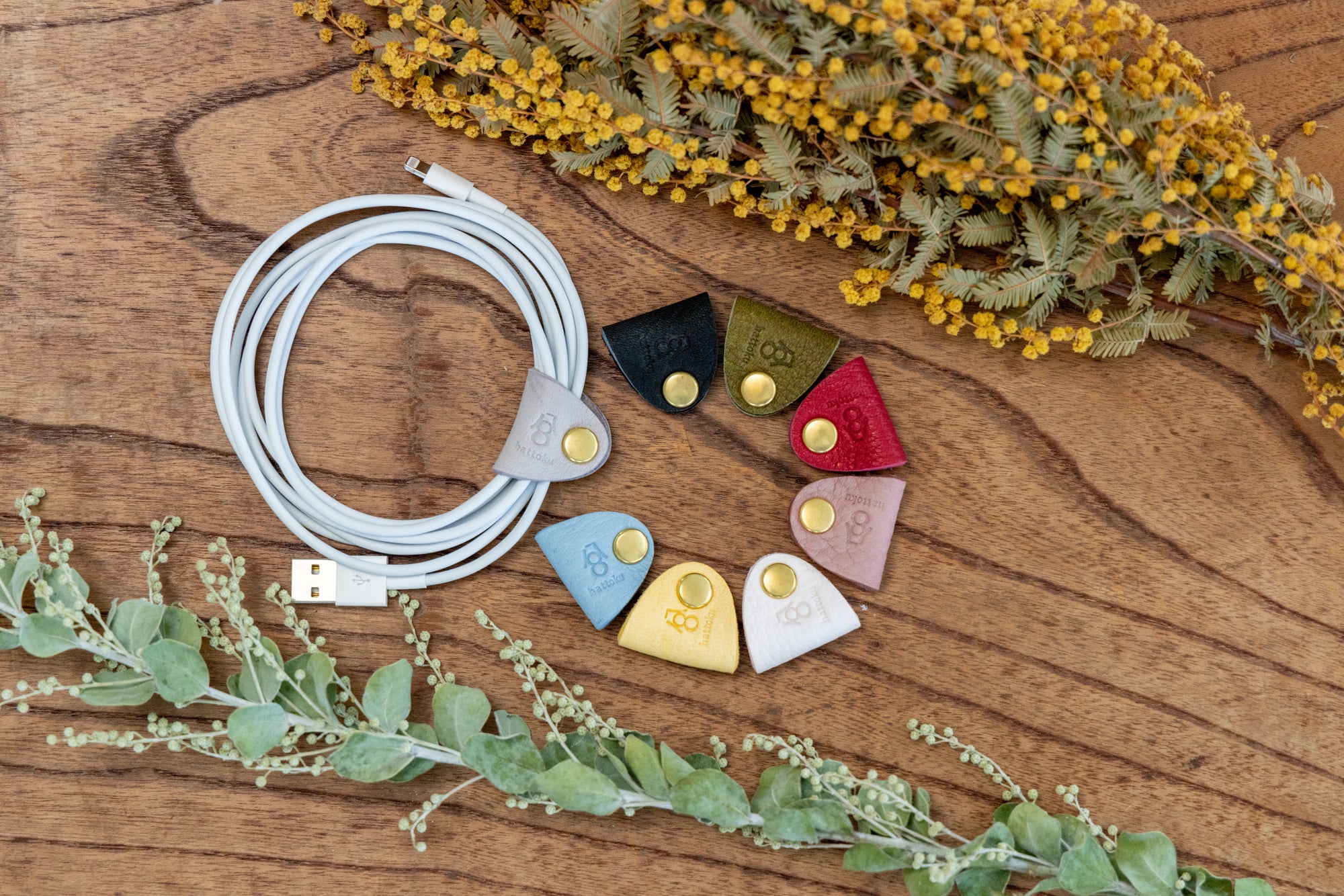 キョン革の伸縮性や吸着性を活かし、カバンの中で散らかりやすいコード類を綺麗にまとめてくれます。