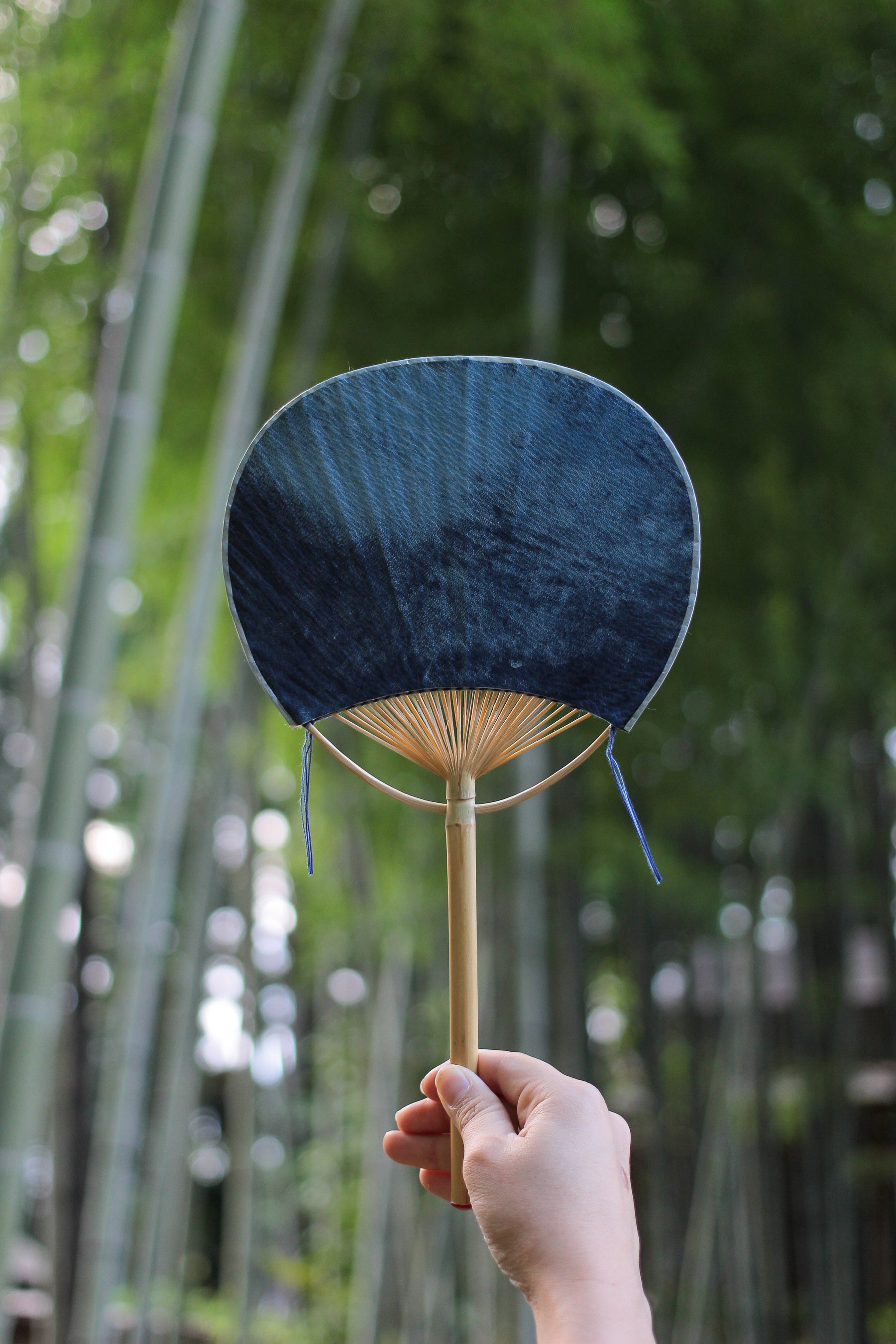 藍染本革×房州うちわ【受注生産】