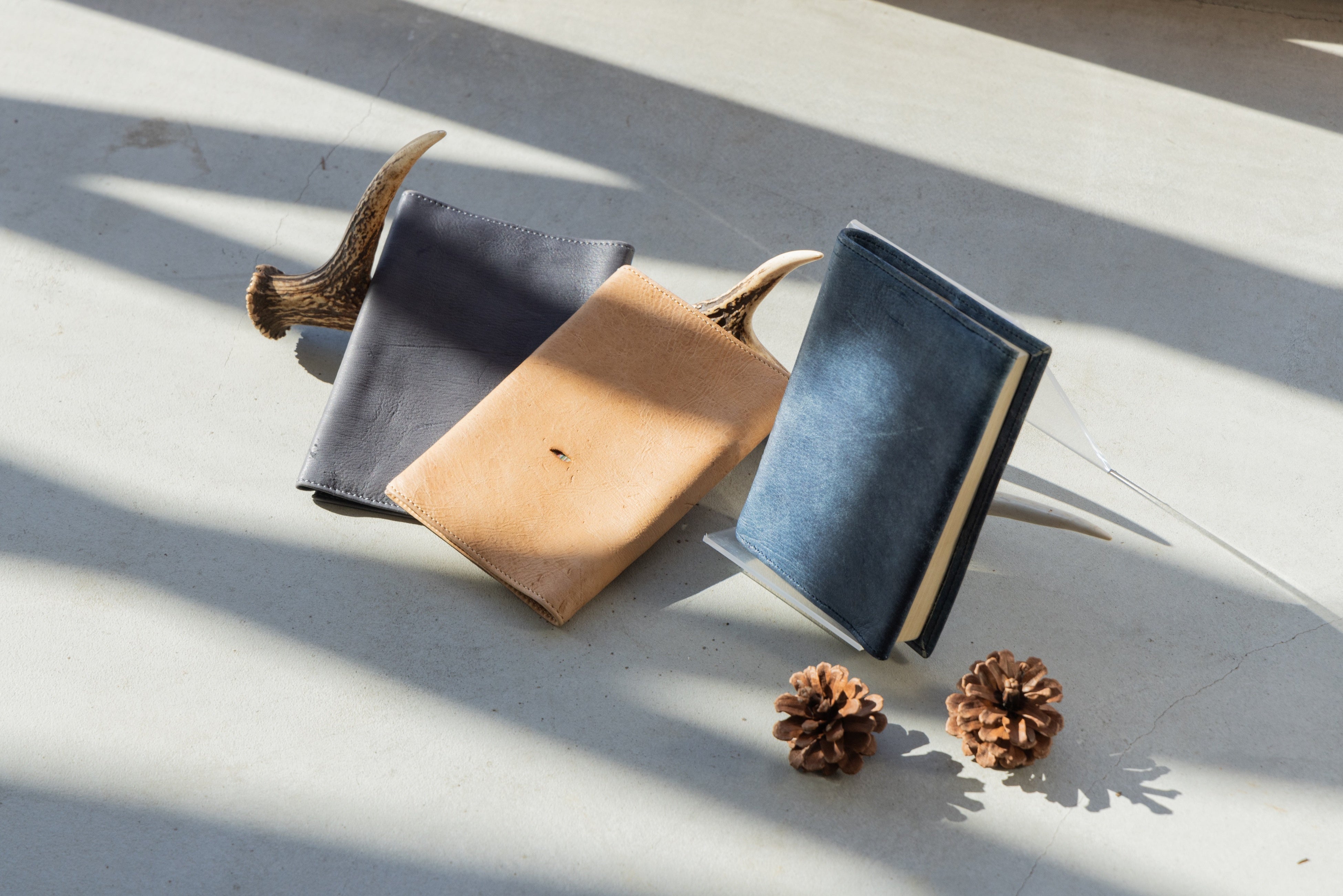 「革のシルク」と言われるほどに高級感あふれる柔らかさとふわっとしたキョン革の手触りの良さを活かして、ブックカバーを作りました。大好きな読書の時間にずっと触れている本。その大切な時間をいつまでも触っていられるほどにふわりとやわらかいキョン革はベストマッチ。