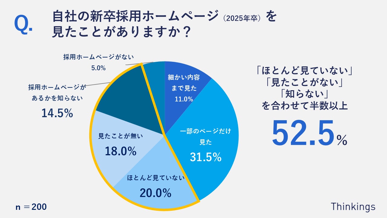 半数以上が「自社の採用HPを見たことが無い」など関心が低い