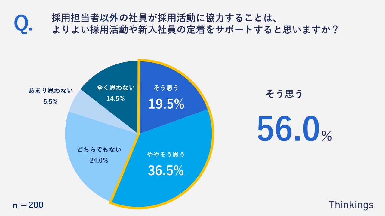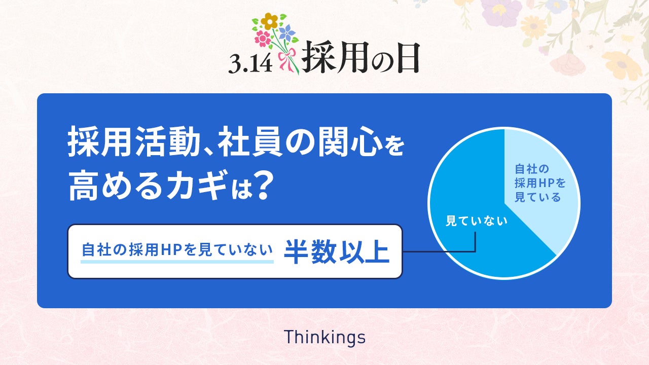 間もなく新入社員を迎えるこの時期に、社員の採用活動への関心度を明らかにすることで、より協力しやすい環境づくりにつながればと考えています。Thinkingsは今後も、企業の成長を支える採用担当者を応援していきます。3月14日「採用の日」が、採用担当者への感謝を伝える一日となることを願い、本調査がそのきっかけとなれば幸いです。