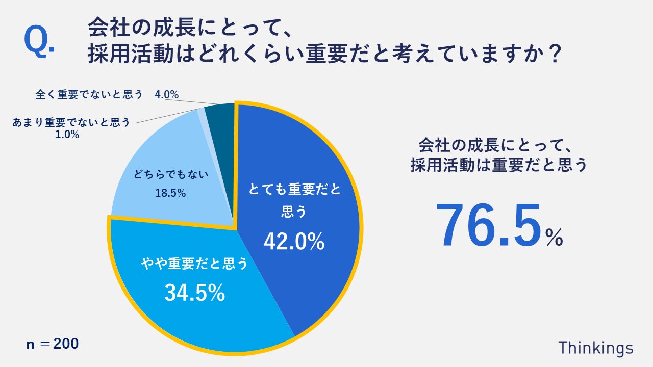 76.5%が「採用は企業の成長にとって重要」と回答する一方 、