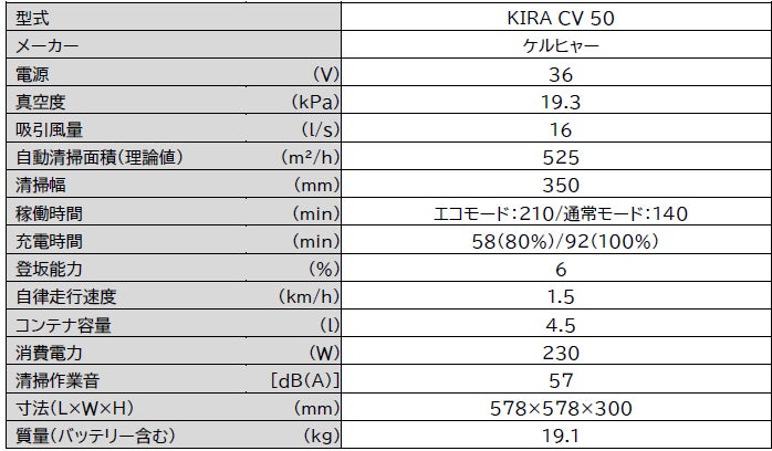 今回、レンタルを開始する「KIRA CV 50」は、交換可能なバッテリーを搭載し、長時間の連続使用が可能な中型ロボットバキュームクリーナーです。カーペットやハードフロアの除塵作業に適しており、高さ30cmのコンパクト設計で、家具やテーブルの下など狭い場所の清掃にも対応します。