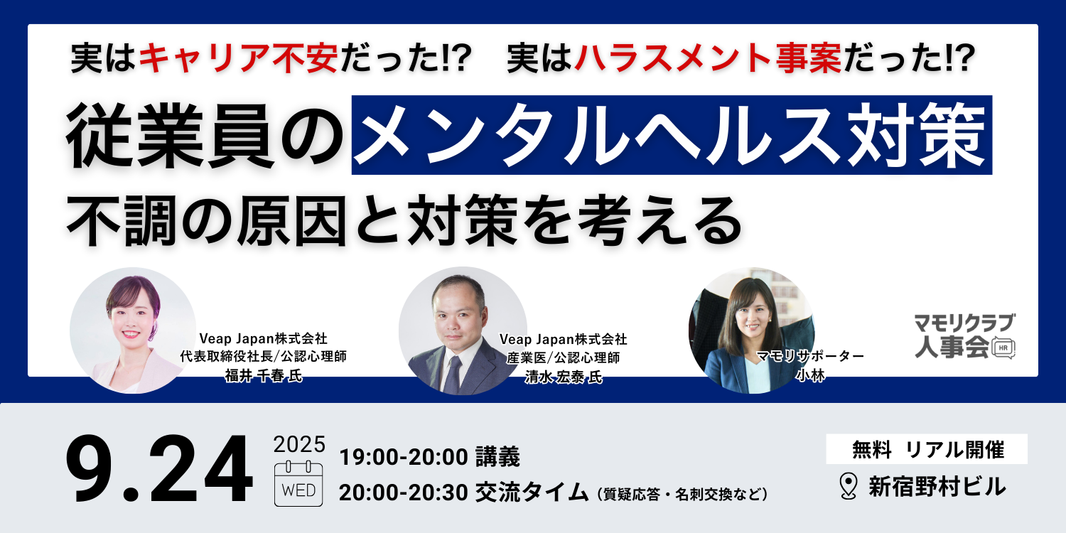 【9/24(水)19:00~無料イベント】従業員のメンタルヘルス対策~不調の原因と対策を考える〜