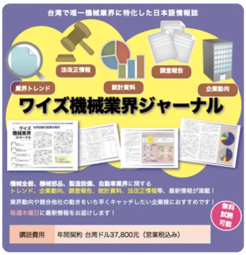 ・日本語台湾経済ニュース、機械業界ジャーナル配信