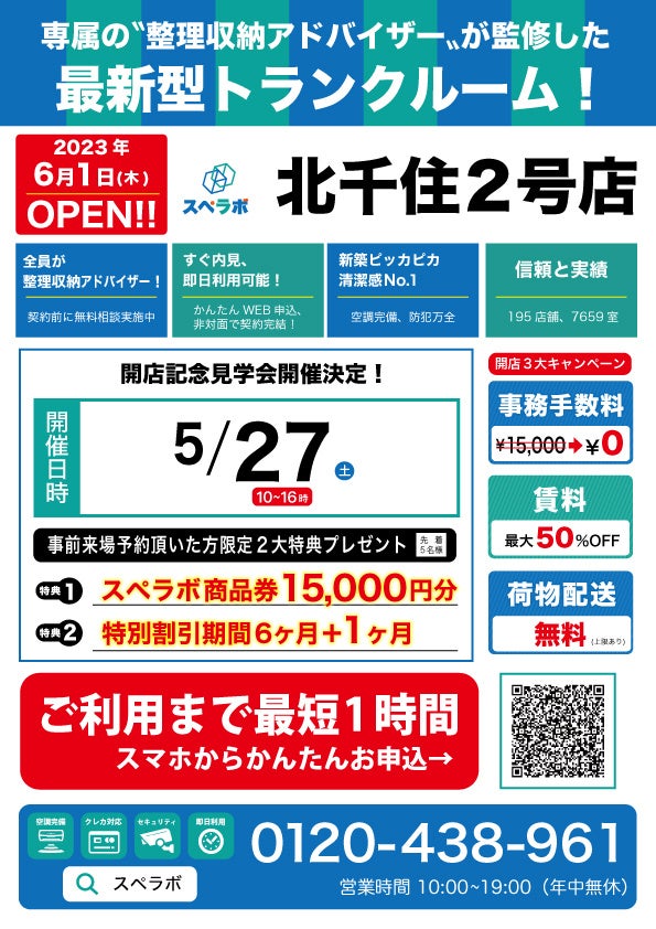 オープンに合わせ5月27日(土)に見学会を実施しますので、ぜひ【スペラボ・北千住2号店】にお越しくださいませ。