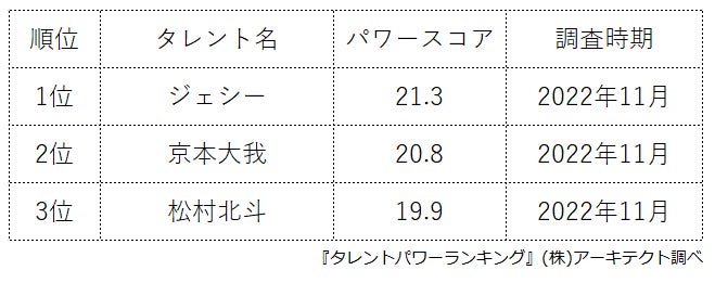本ランキングは、2022年11月度に実施したタレント調査データ(一部過去実施データ)を利用し、タイトルに応じてランキング形式でまとめたものです。