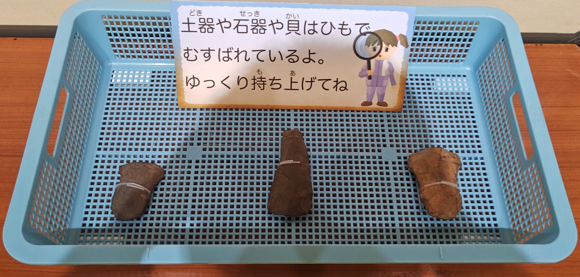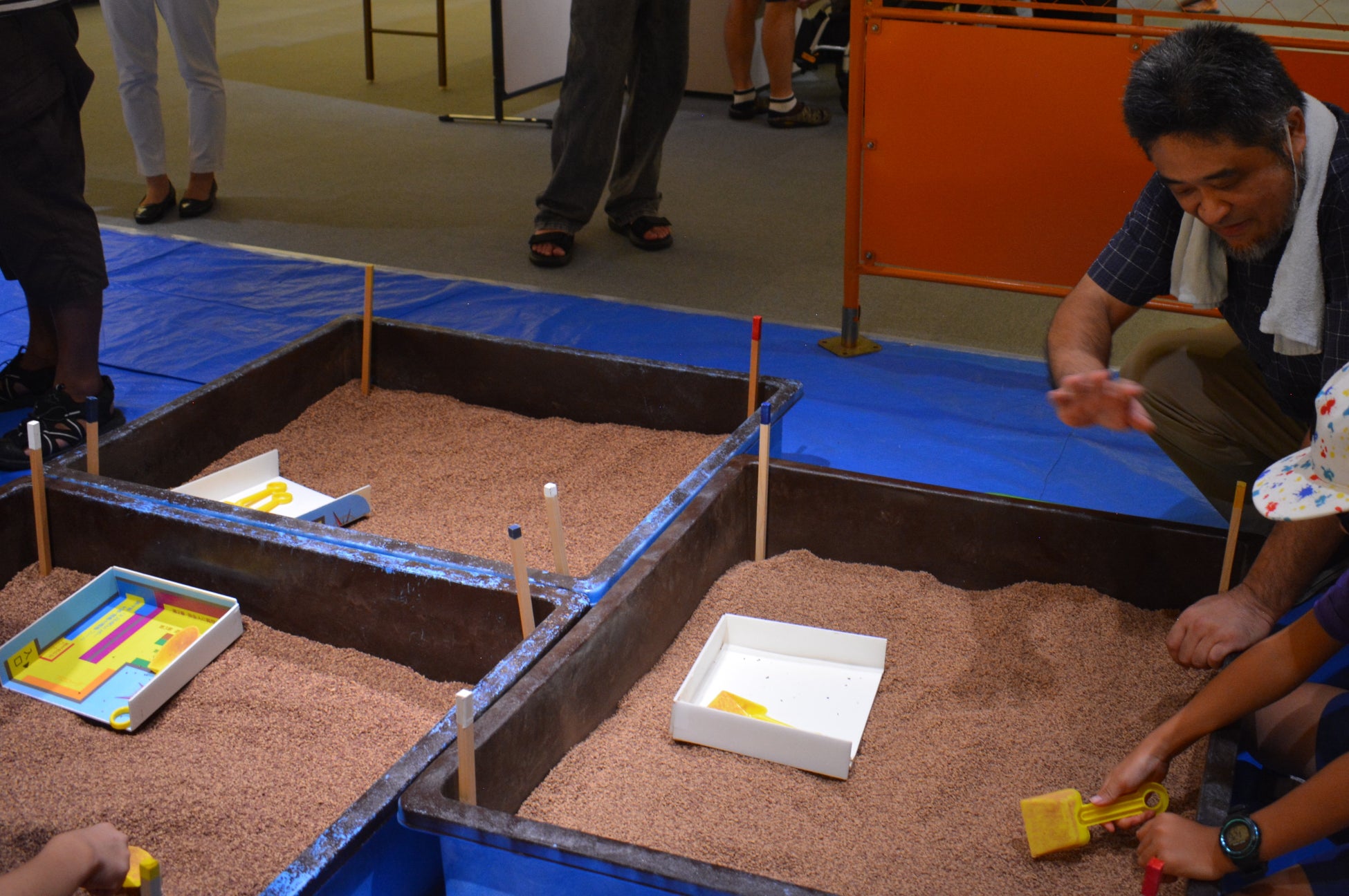 土器や石器などをさわったり、発掘調査の疑似体験をしたりすることができます。調査方法の解説を聞いたら、実際に道具を使って掘ってみよう!出土したモノを観察して様子を記録すると気分はもう考古学者!発掘体験で記録したシートは持ち帰ることができます。(発掘体験は開催日が決まっています。)