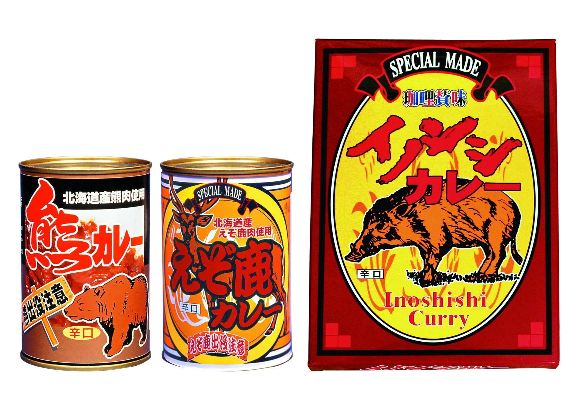 ●商品内容 :熊カレー・えぞ鹿カレー 各410g、イノシシカレー 180g