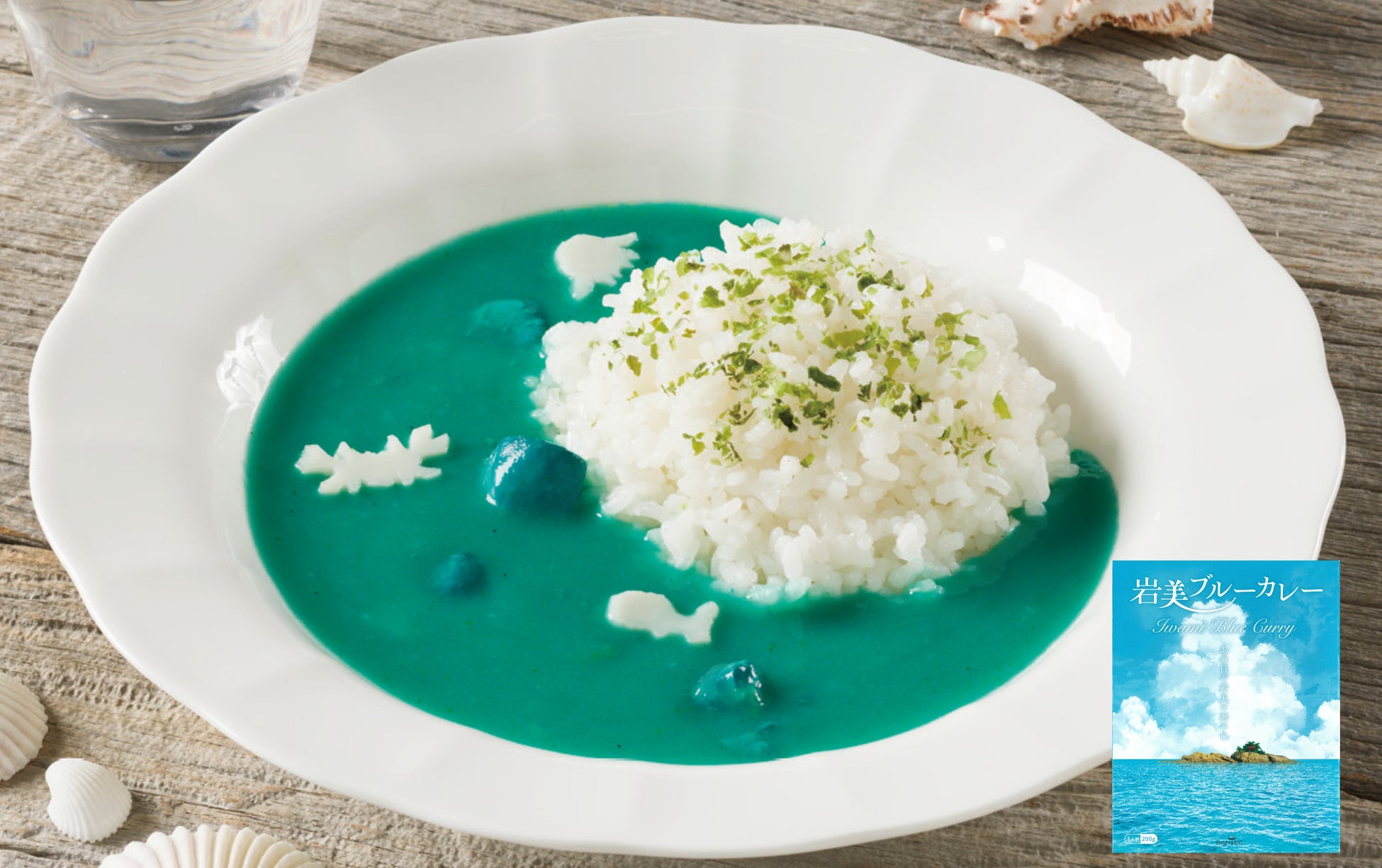 鳥取県岩美町の海岸に広がる美しい海をイメージした「青いカレー」です。