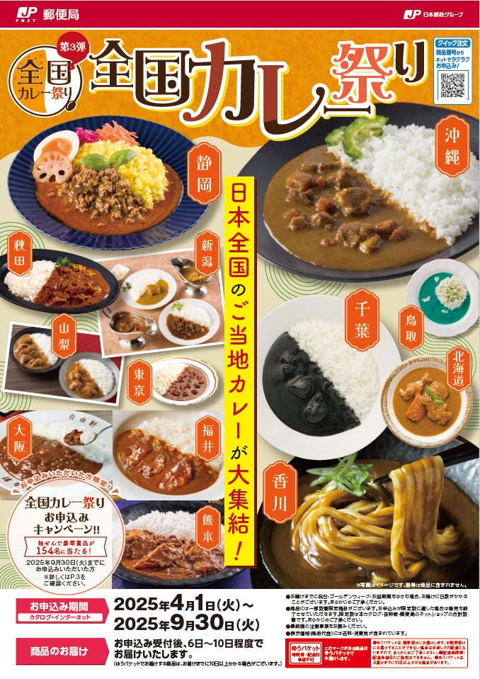 株式会社郵便局物販サービス(東京都江東区、代表取締役社長 荒若 仁)は、「2025年 全国カレー祭り(上期)カタログ」のお申込み受付を2025年4月1日(火)から開始します。