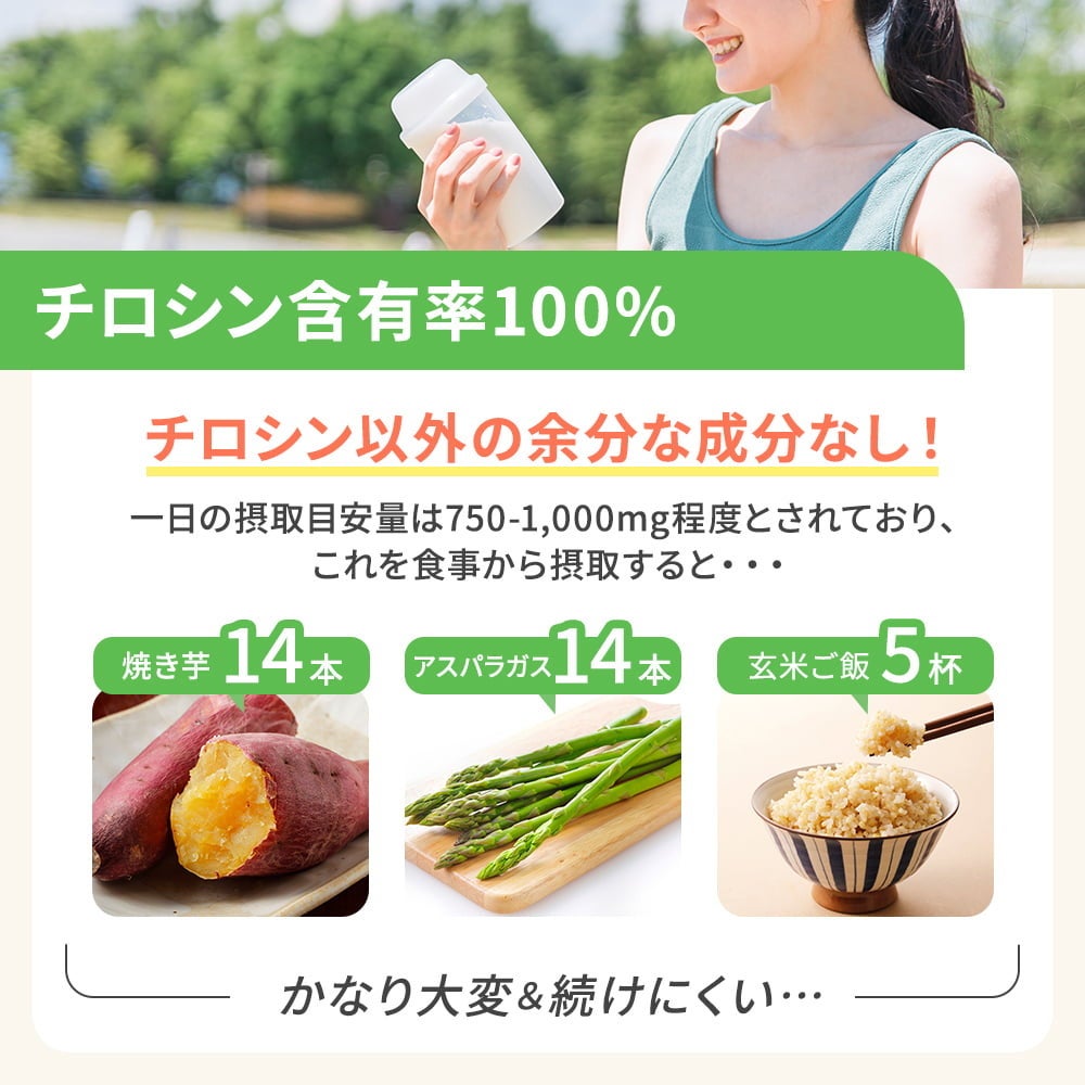 本製品はチロシン以外の余計な物質は含まれておらず、1日スプーンすりきり一杯摂取していただくことで必要な量のチロシンを摂取していただけます。